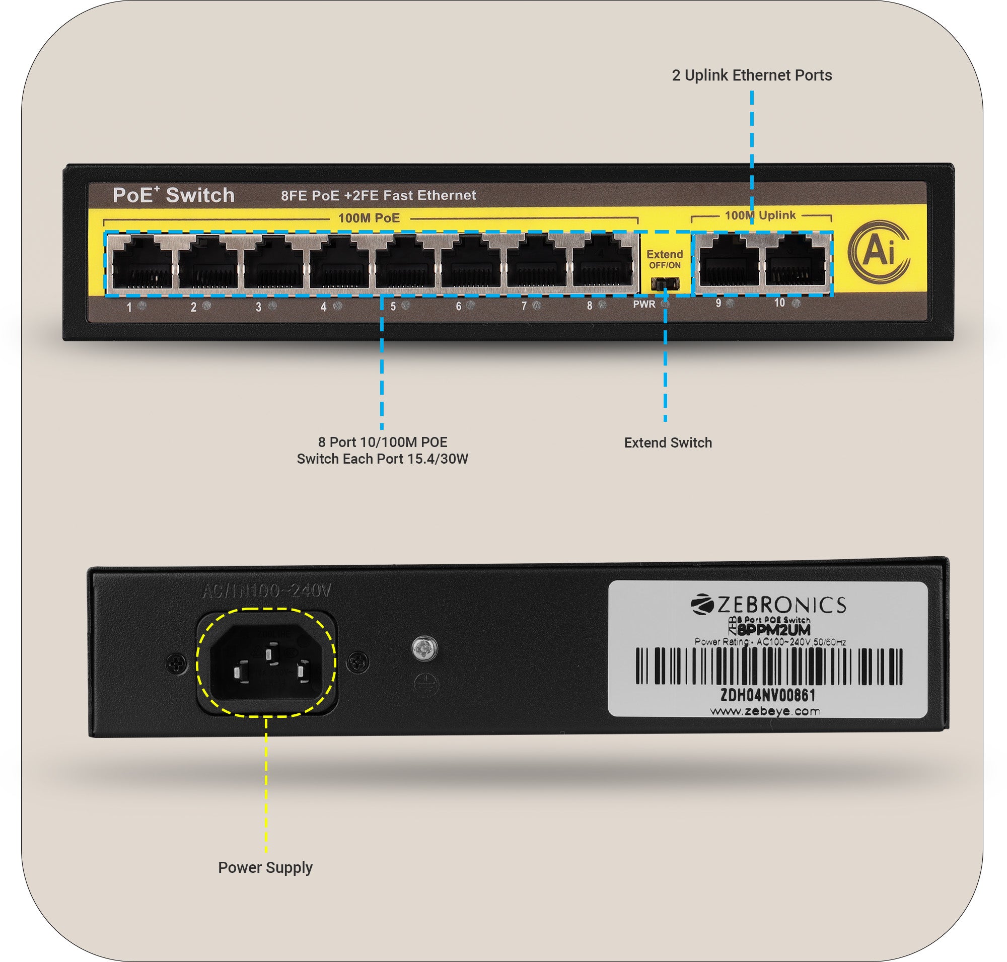 | Connector Type | 8 Ports 10/100M PoE + 2 Ports 10/100M Ethernet Uplink | |