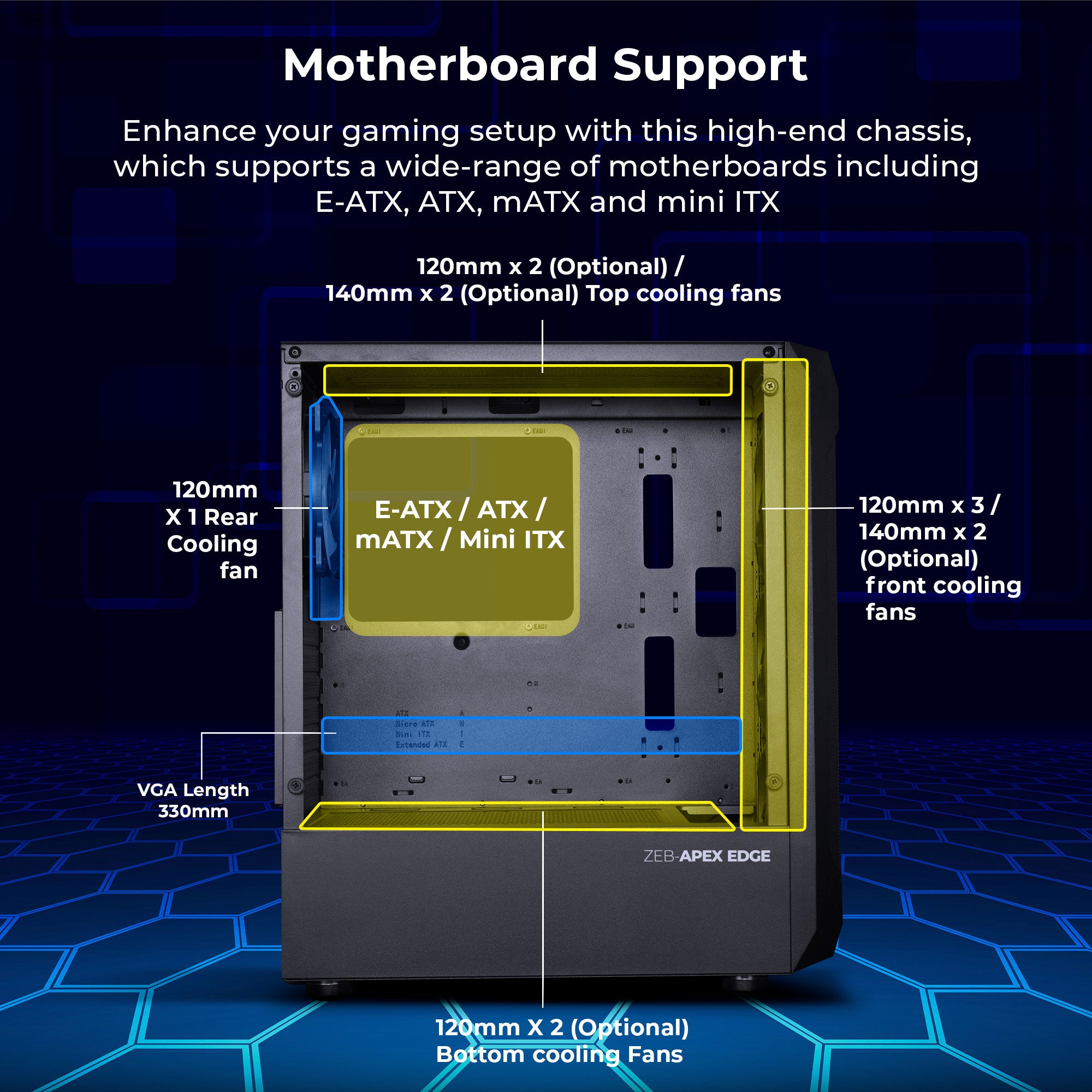 | Motherboard | E-ATX / ATX / mATX / Mini ITX | |