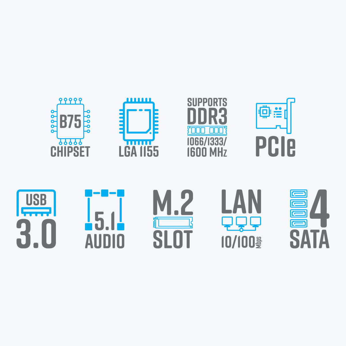 | Supported CPU | Socket 1155 / Intel Pentium / Celeron / i3 / i5 / i7 (2nd & 3rd Generation) Series Processors |