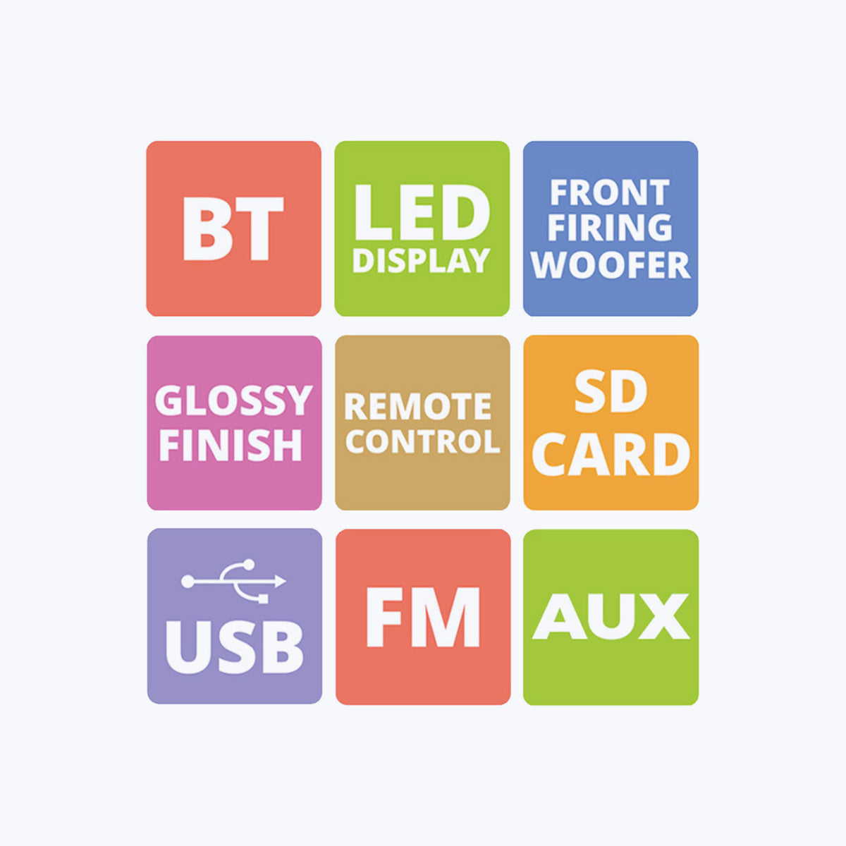 | Total output power | 18 + 8w x 2, Total 34 W RMS | |