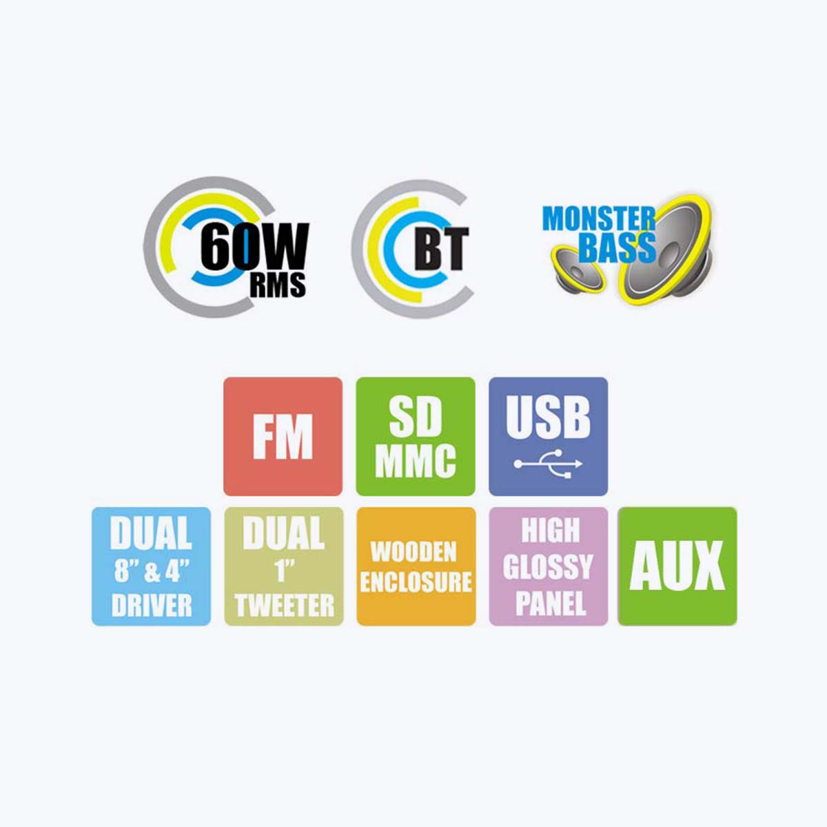 | Total output (RMS) | 60W (30W + 30W) | |