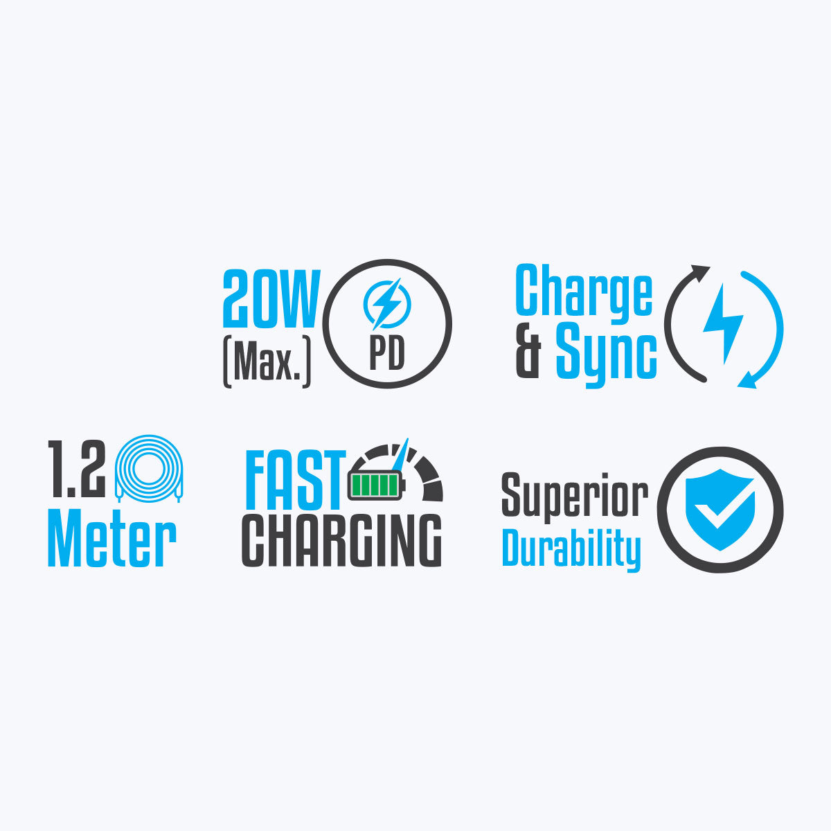 PD 20W (max) | Fast Charging | 1.2 Meter | Charge & Sync | Superior Durability | Country of Origin : China