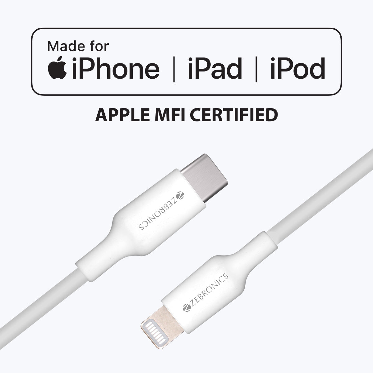 Type C to lightning cable | 3A | 1 Meter | Upto 480 Mbps data transfer | Superior durability | Country of Origin : China