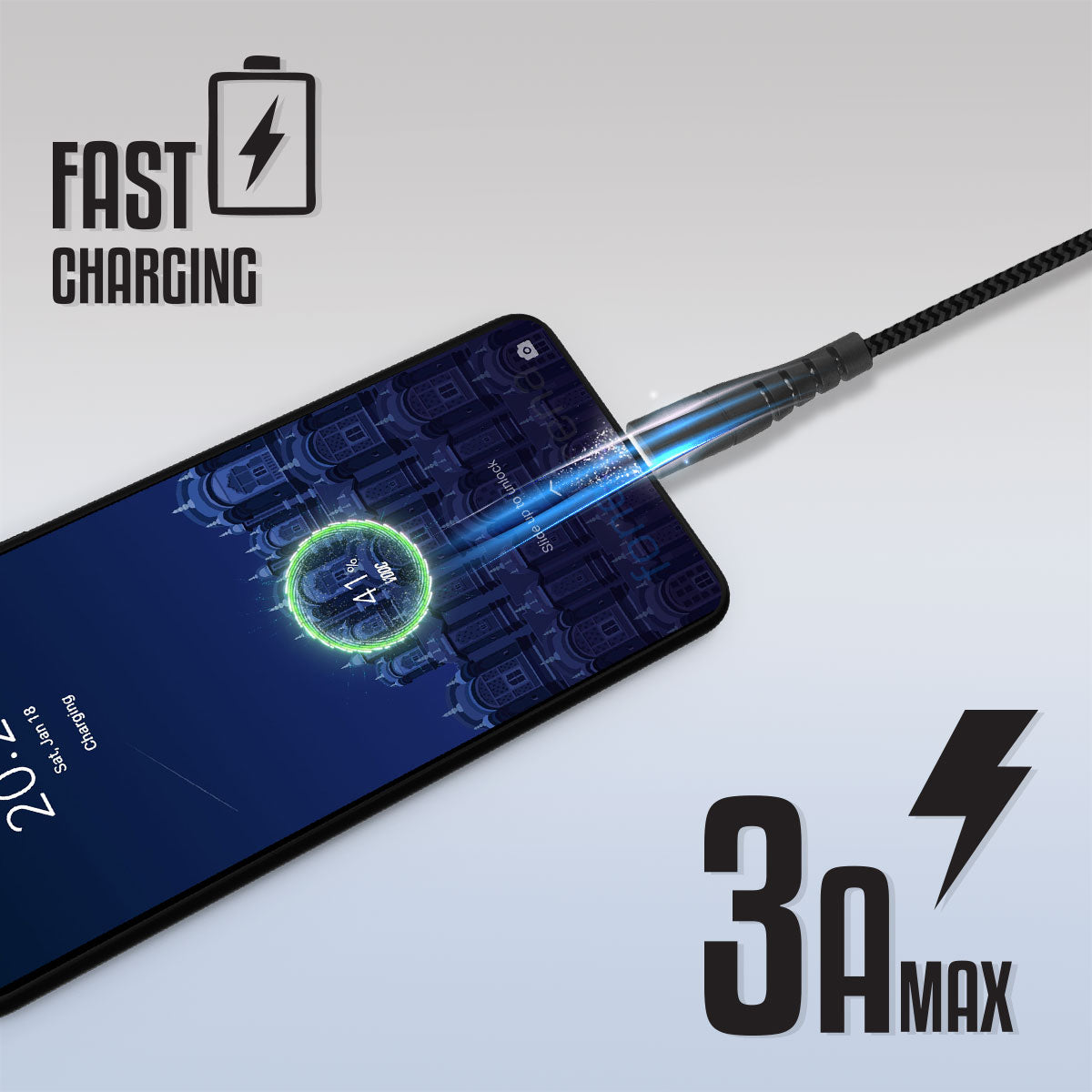 Fast Charging | 3A (max) | 1 Meter Braided Cable | Charge & Data Sync | Superior Durability | Country of Origin : India