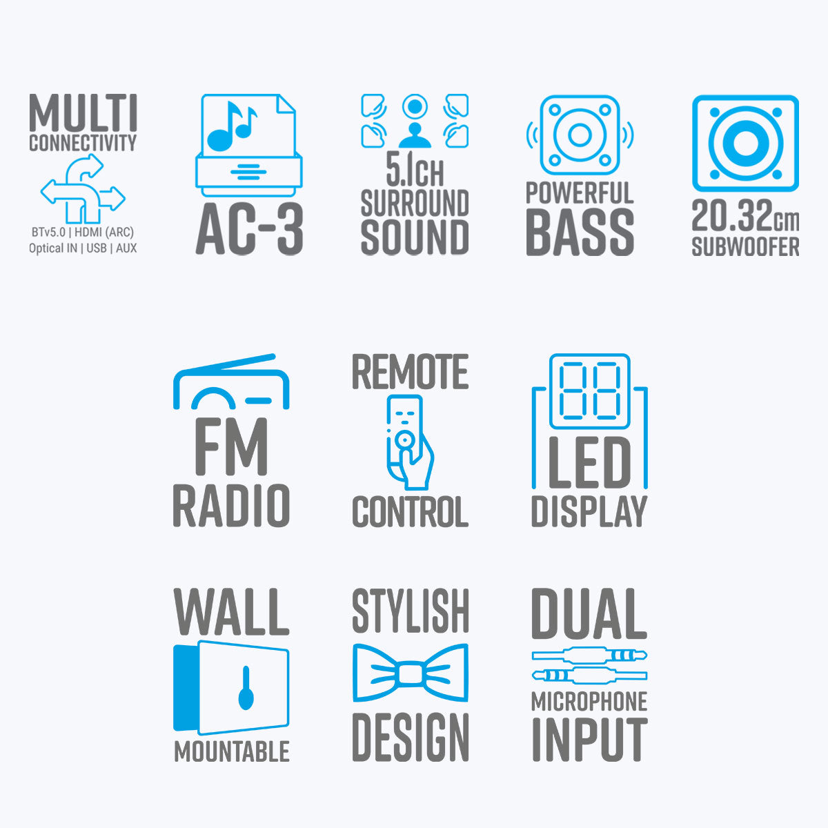 | Line input | 2ch RCA , AC-3, optical, HDMI ARC |