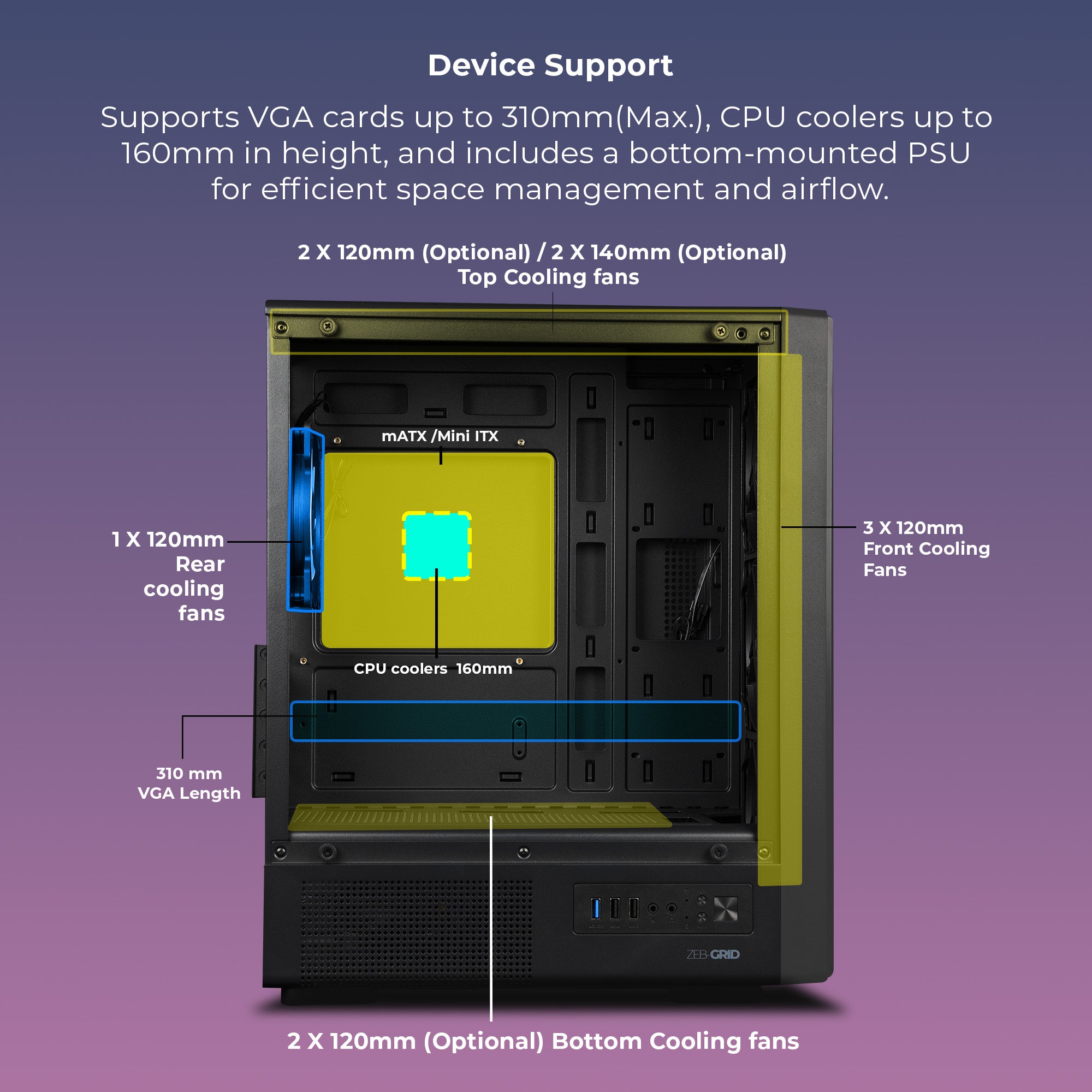 | CPU Cooler size | 160mm | |