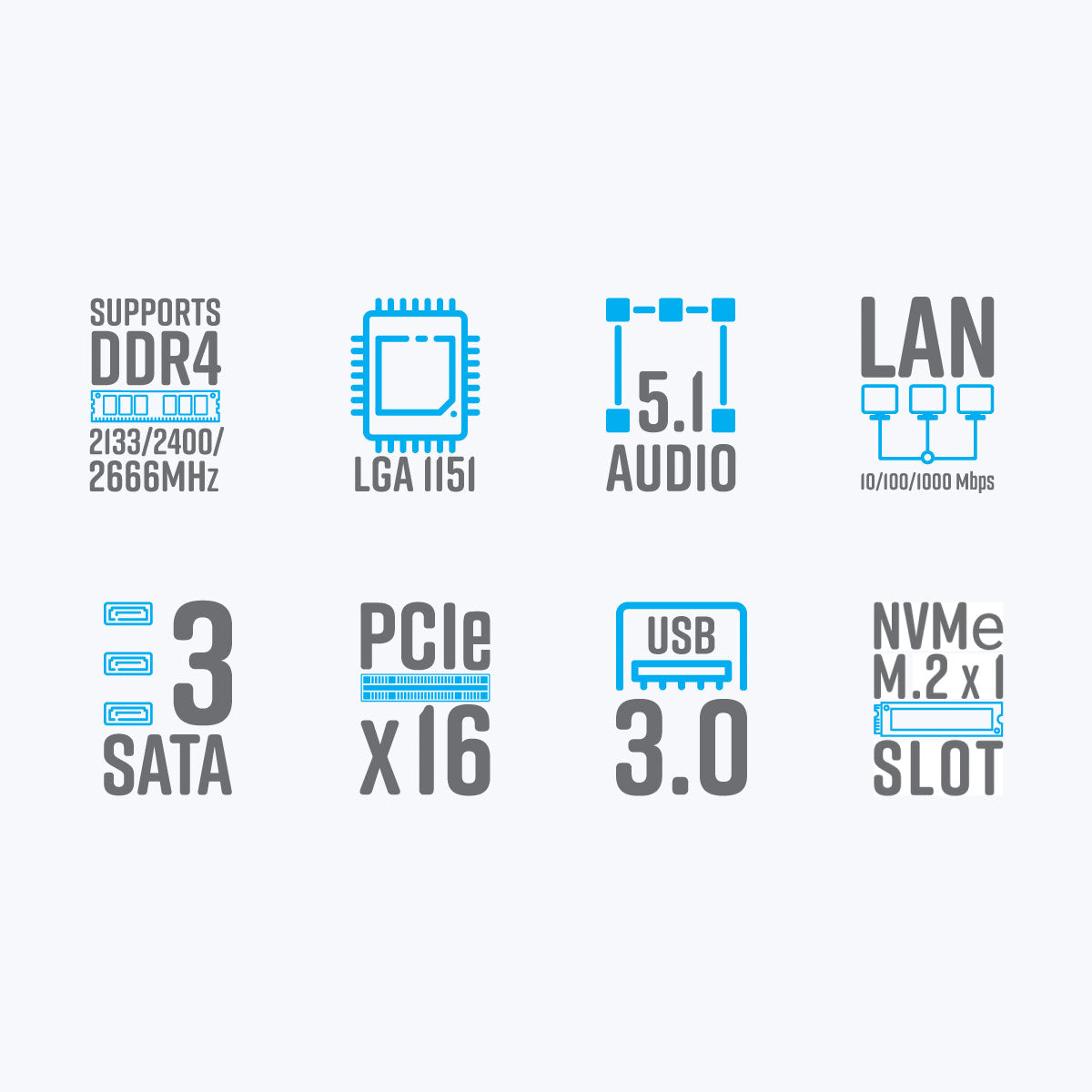 | Supported CPU | Intel i3/i5/i7/Celeron/Pentium, 8th & 9th generation series processor in LGA 1151 | |