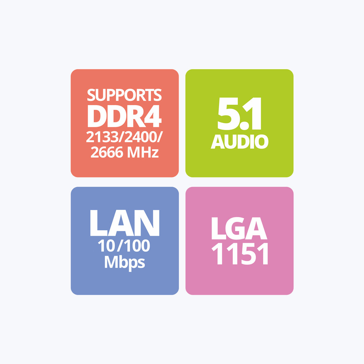 | Memory Supported | 2 DDR4 DIMM Memory Slots, Memory up to 32GBSupports DDR4 2133/2400/2666 MHz memory | |