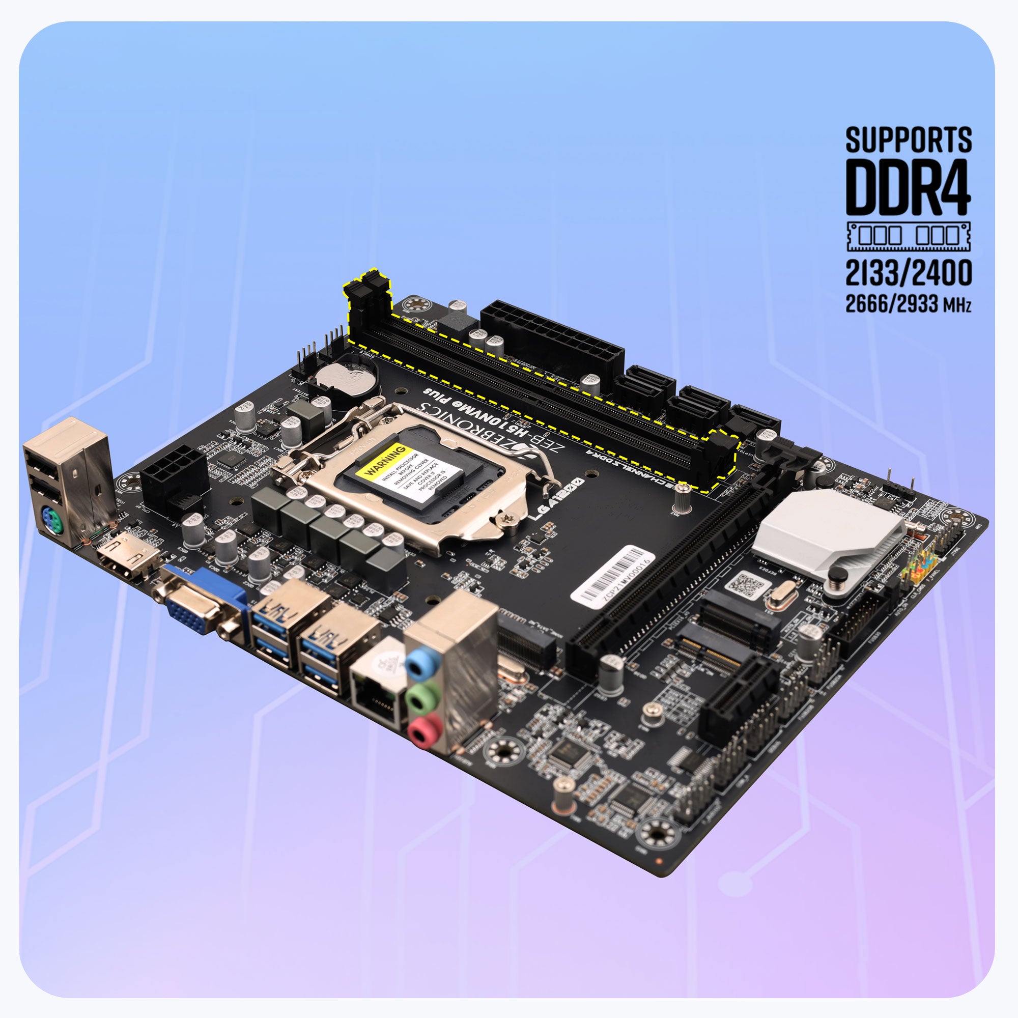| Memory Supported | 2 No.s DDR4 DIMM Memory Slots Memory up to 64GBSupports DDR4 2133/2400/2666/2933 MHz memory | |