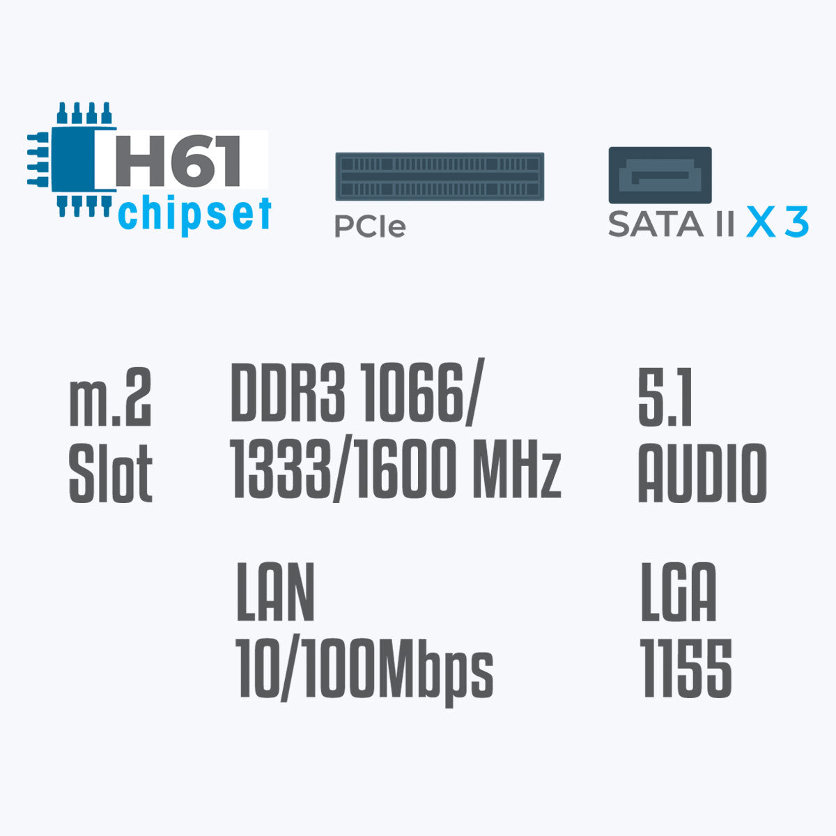 | Chipset | Intel H61/H67 | |