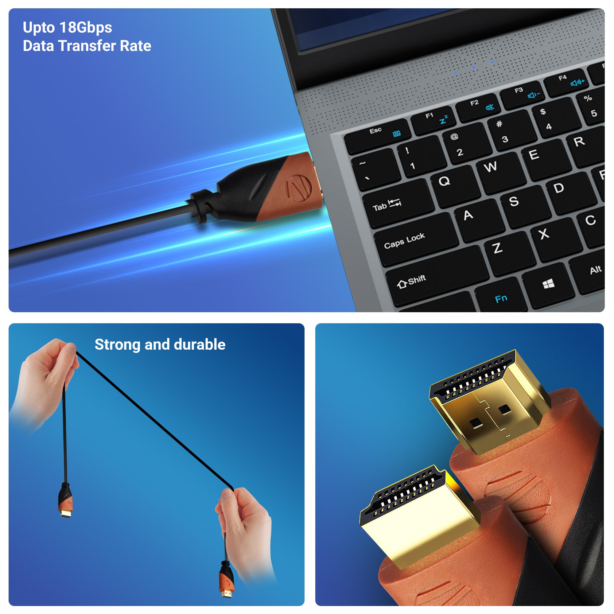 HDMI A Male to A Male Cable | Supports upto 21:9 video aspect ratio | Supports upto 32 audio channels | Data transfer rate upto 18Gbps | Compatible with HDMI-enabled devices like TVs, displays, A/V receivers, Blu-ray players, computers, PlayStation & more | Supports ARC & CEC extension | 3D compatible | Country of Origin : India | Package Content | HDMI Cable : 1 U