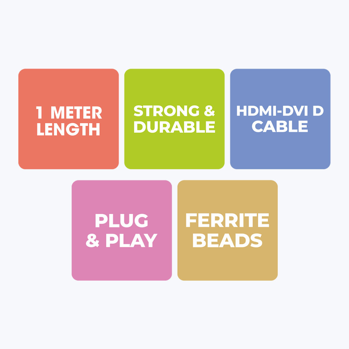 HDMI-DVI D Cable | Bi-directional | Data transfer rate upto 7.92Gbps | Compatible with devices like TVs, displays, | A/V receivers, Blu-ray players, computers,Playstation & more | 1meter Length | 24K Gold-Plated Connectors | 4K @ 60Hz Supported | HDR Suppported | Strong and durable | Plug & Play | Ferrite Beads to avoid interference | Package dimension(WxDxH) | Country of origin | Package contents | HDMI-DVI Cable