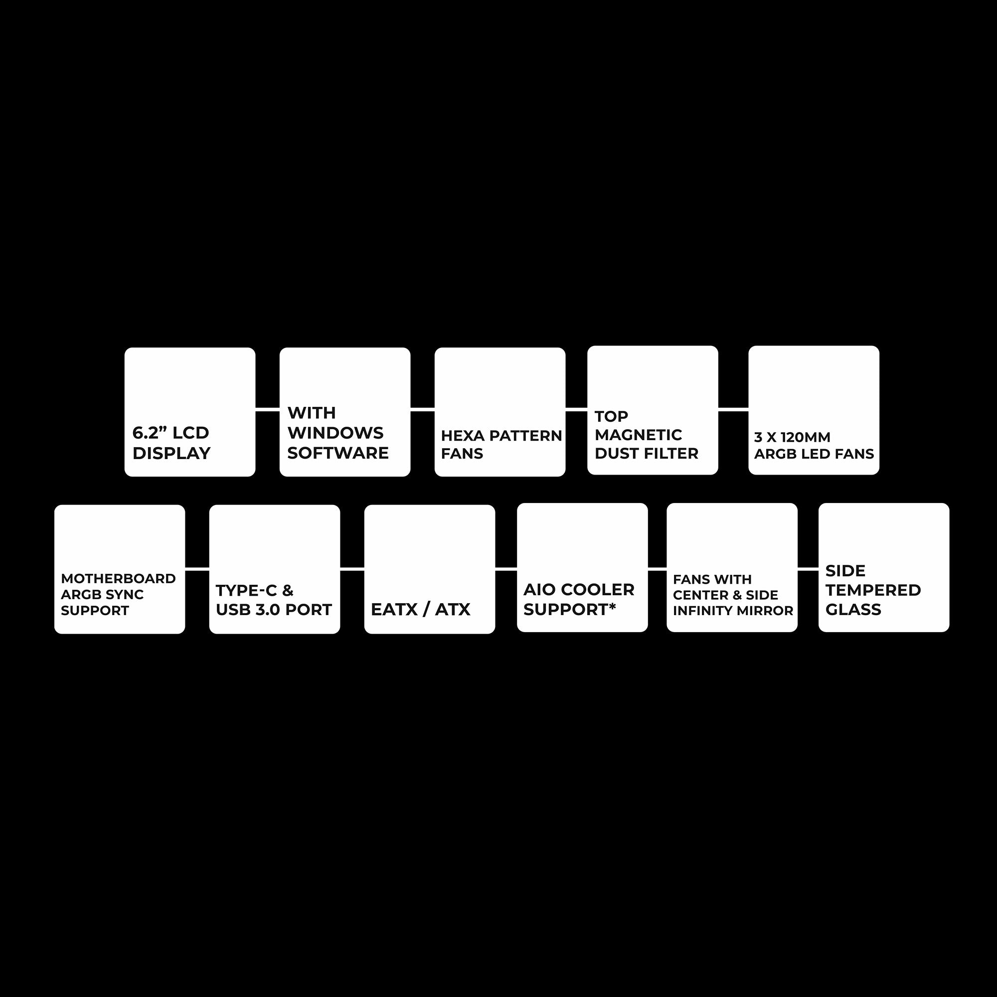 | Top | 120mm x 3 (Optional) /140mm x 3 (Optional) | |