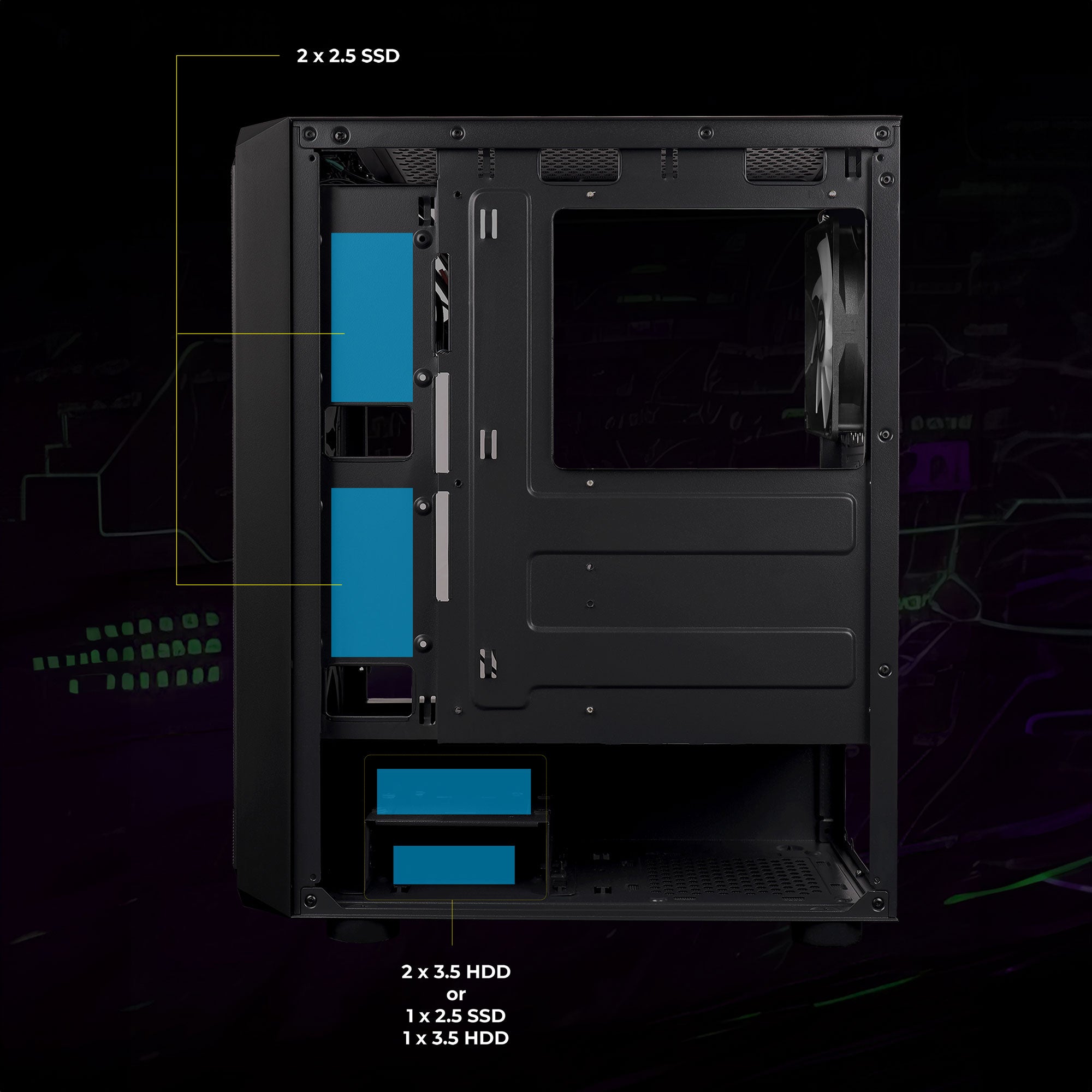 | Cooling fans | Centre Glow RGB fans |