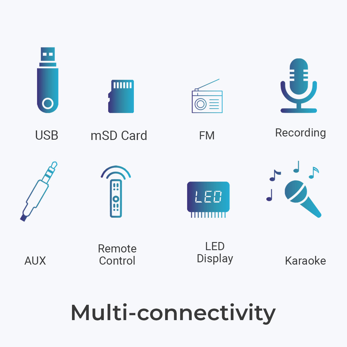 | File format support (USB/mSD) | MP3, WAV, WMA |