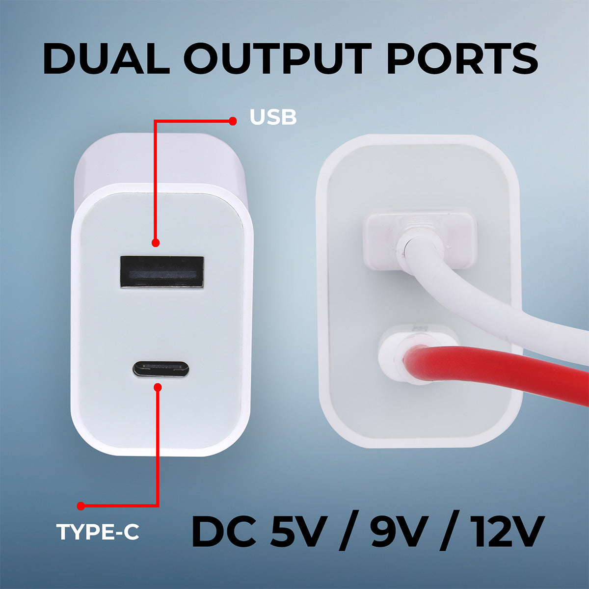 | Max Output | Type-C: DC 5V 3A / 9V 2.22A / 12V 1.67A (20W max) USB-A: DC 5V 3A / 9V 2A / 12V 1.5A (18W max) | |