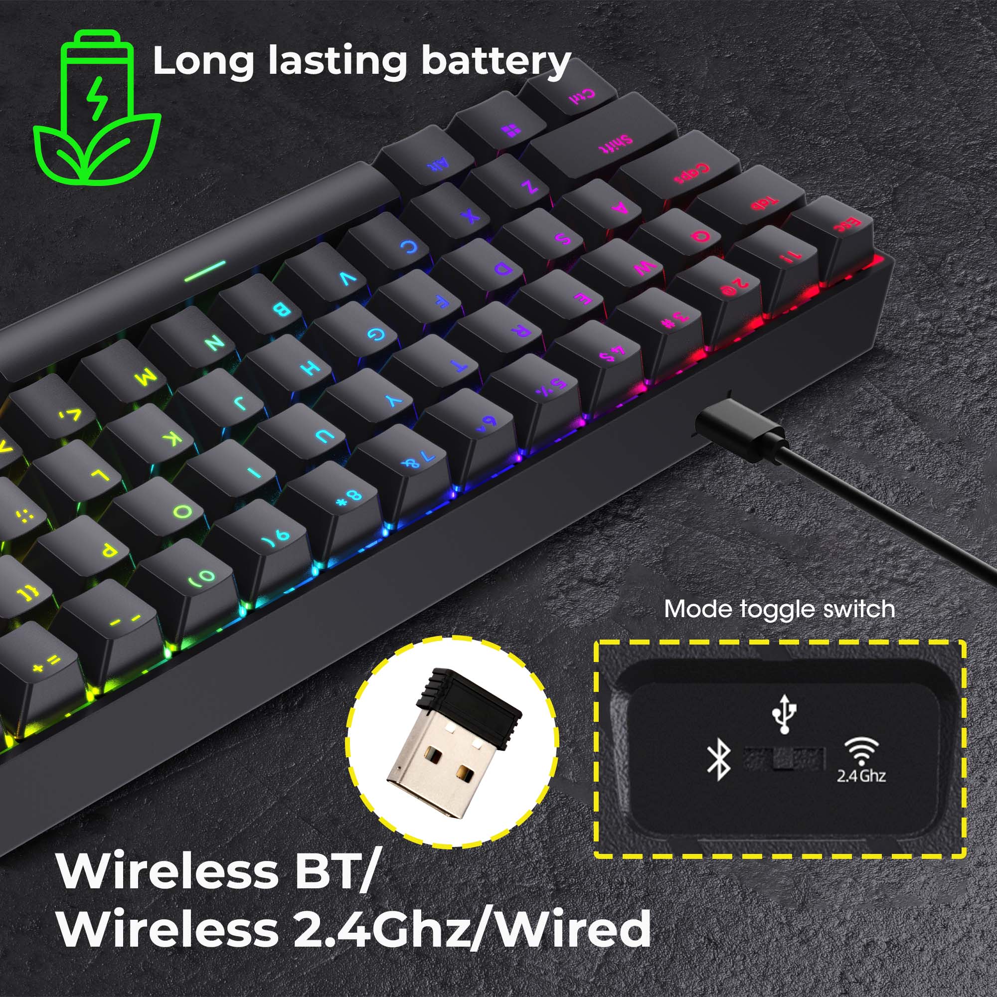 | Interface | Multi Mode (BT/2.4GHz RF/Wired) | |