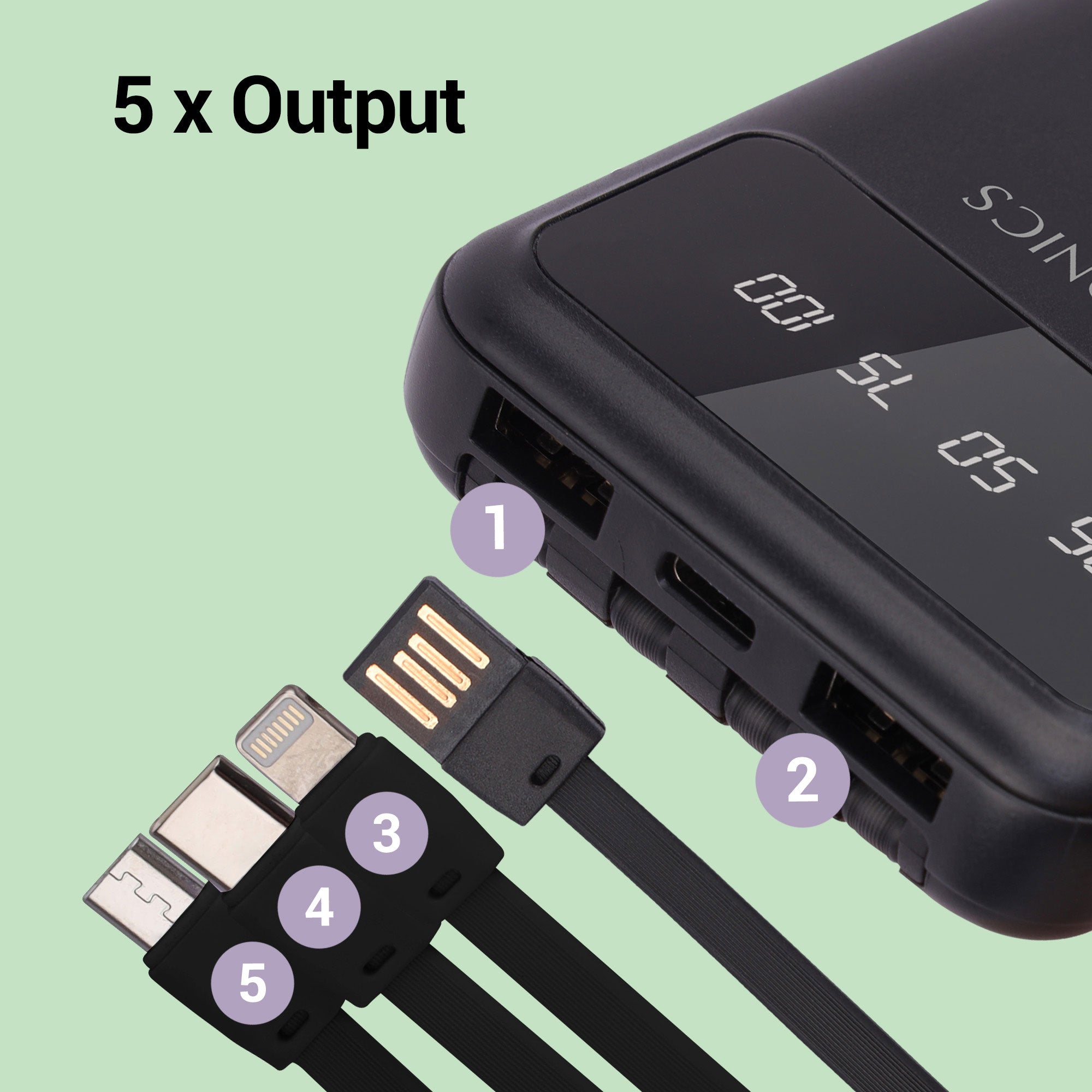 | Output 5(Micro USB) | DC 5V/2A (total 2A max) | |