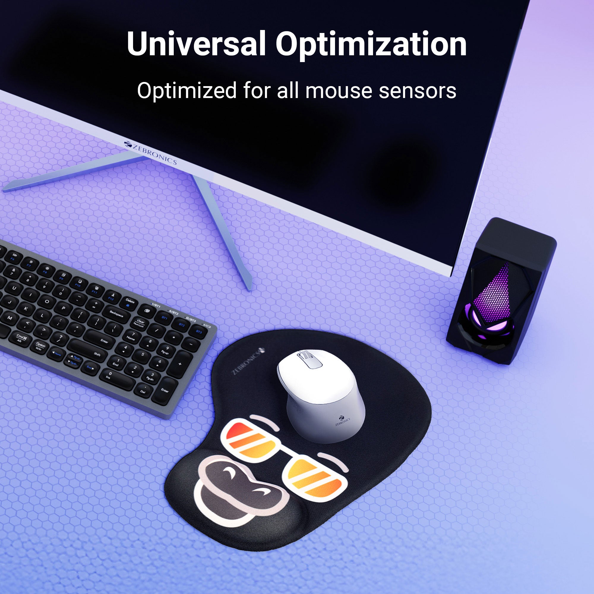 Anti slip rubber base | Ultra-Smooth fabric surface | Memory Jel Wrist Rest | For Speed and Precision | Optimised for all mouse sensors | Product Dimensions (W x D x H) : 19 x 23 x 2 cm | Net.weight : 105g | Country of origin : PRC | Package Content | Mouse pad : 1U