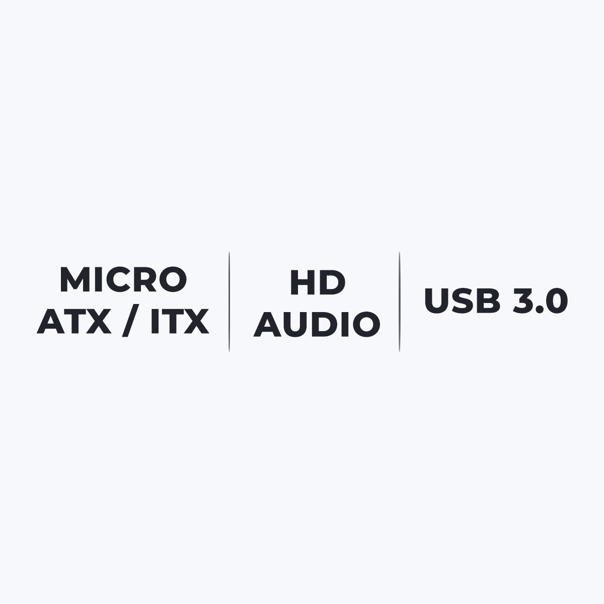 Supports Micro ATX / ITX Motherboard | Front USB 3.0 x 1 / USB x 1 and Audio | 1 x 2.5” devices (SSD) max. | 2 x 3.5” devices (HDD) max. | Thumbscrews | Product dimension (W x D x H) | Package dimension (W x D x H) | Net. weight | Country of Origin