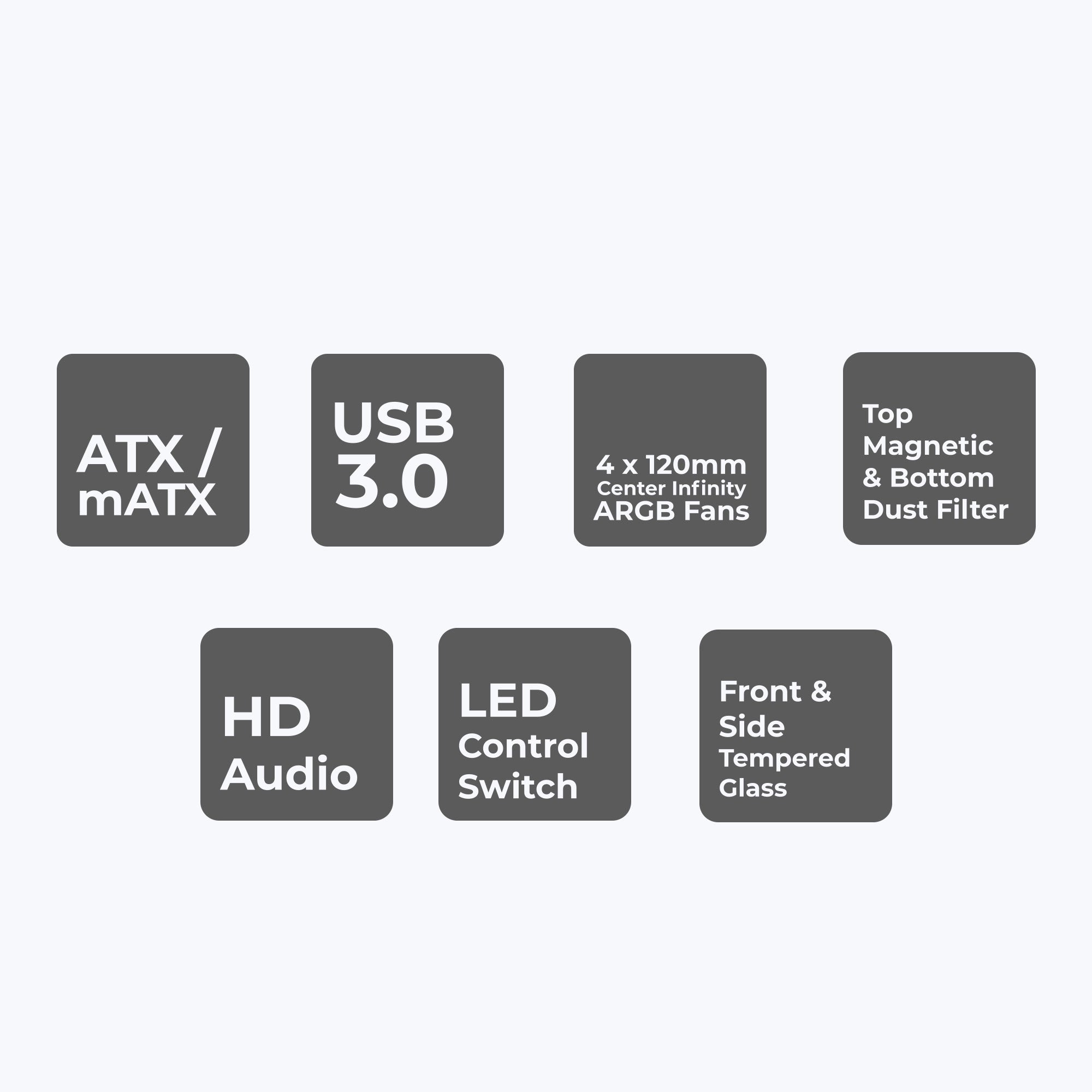 | Top | 120mm x 3 (Optional) / 140mm x 2 (Optional) | |