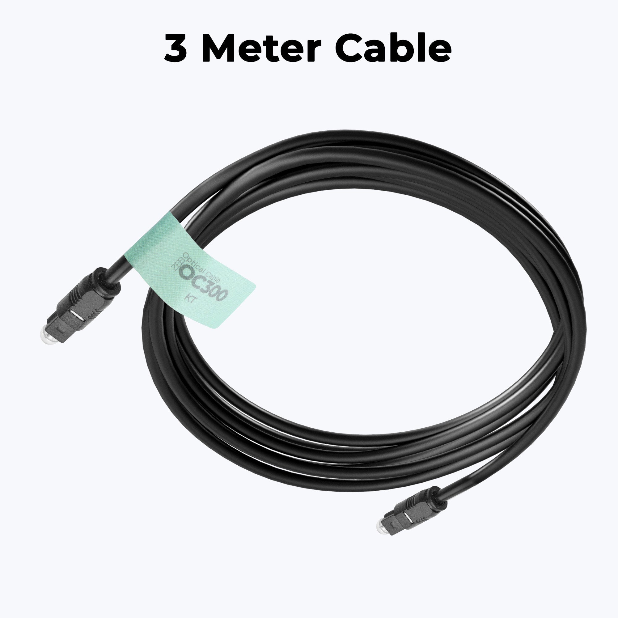Optical Male to Male Cable | 3 Meter | Supports 2.1 & 5.1 audio channels | Compatible with OPTICAL-enabled devices like TVs, Sound Bars, A/V receivers, DVD, Blu-ray players, Playstation & more | Supports PCM, Dolby Digital & Dolby Digital Plus | High Quality Audio Transmission | Strong and durable | Net Weight : 54.5g | Country of Origin : PRC | Package Content | Optical Cable : : 1 U