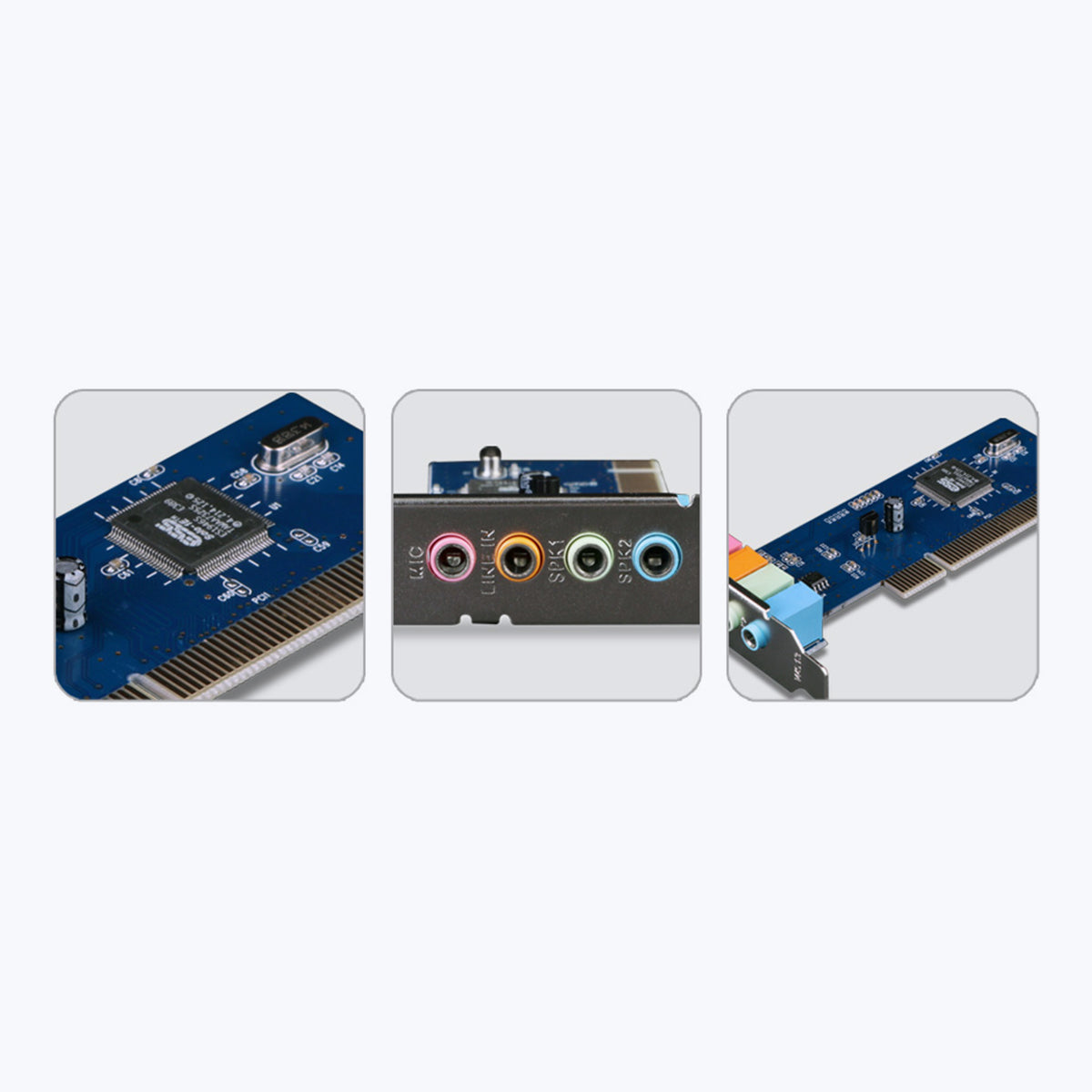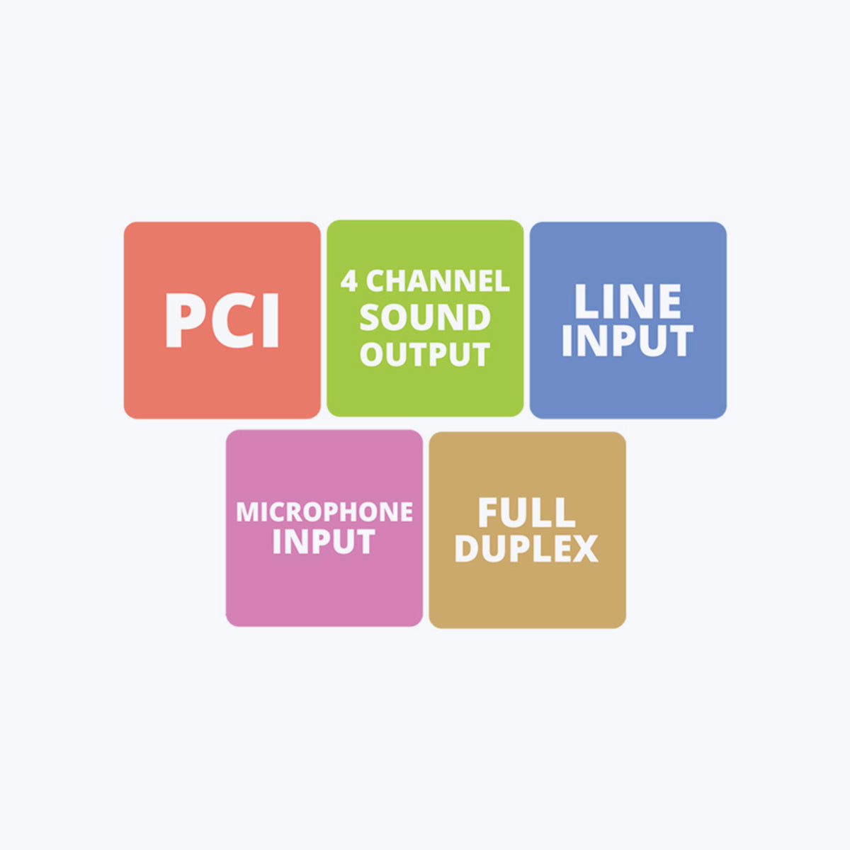Support 4 channel surround sound output | Line input & microphone input | 120dB full duplex playback of audio quality | 44 kHz sound sample recording and playback | Compatible with windows XP, windows 7, MS-DOS, Windows NT, Window 2000 (Compatible with 32bit OS only) | Country of Origin : China | Package Contents | PCI card : 1 unit | Driver CD : 1 unit | User manual