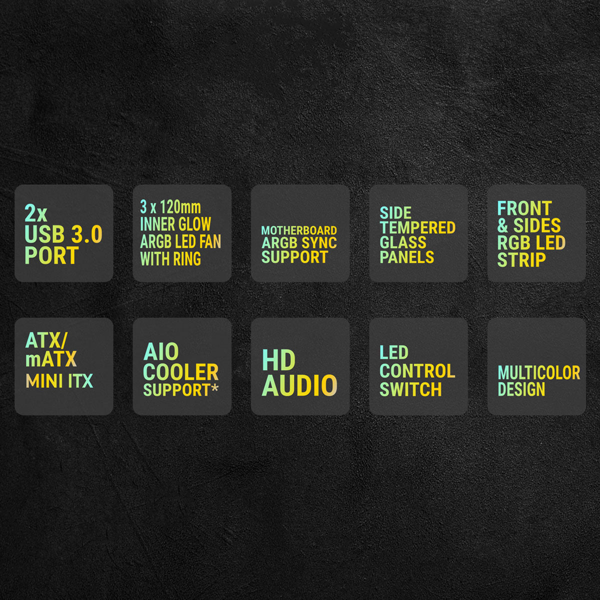 | Side panel | Dual tempered glass panel with RGB LED bar |