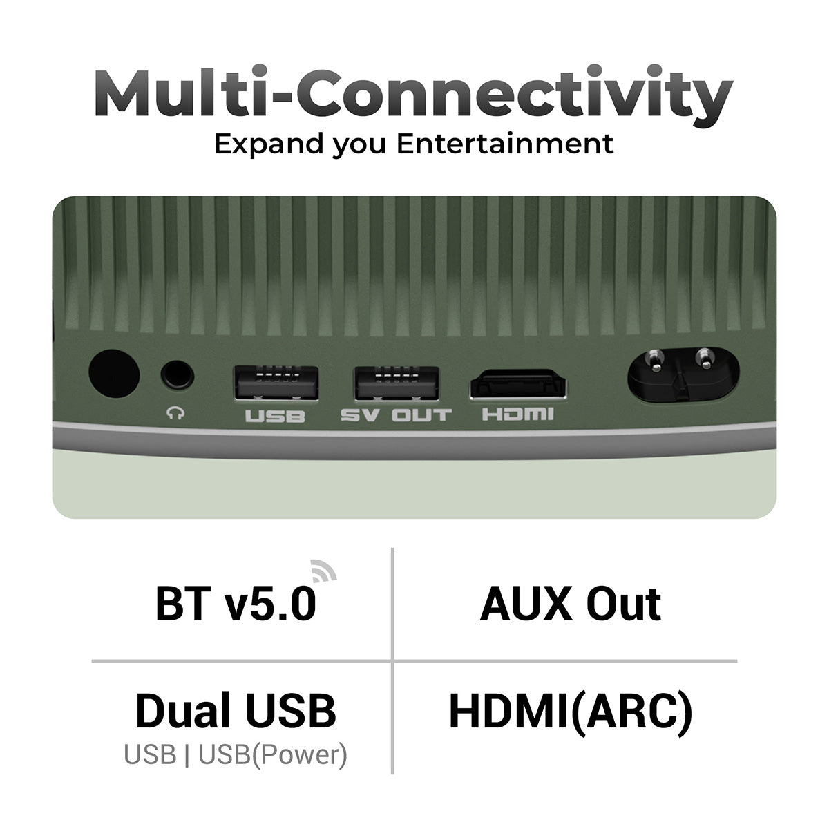 | Port Interface | HDMI (ARC), Dual USB: 1 x USB | 1 x USB (power), AUX OUT |