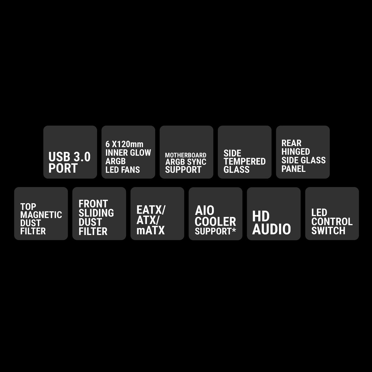 | Cooling fans | Inner glow ARGB LED Fan with ring |