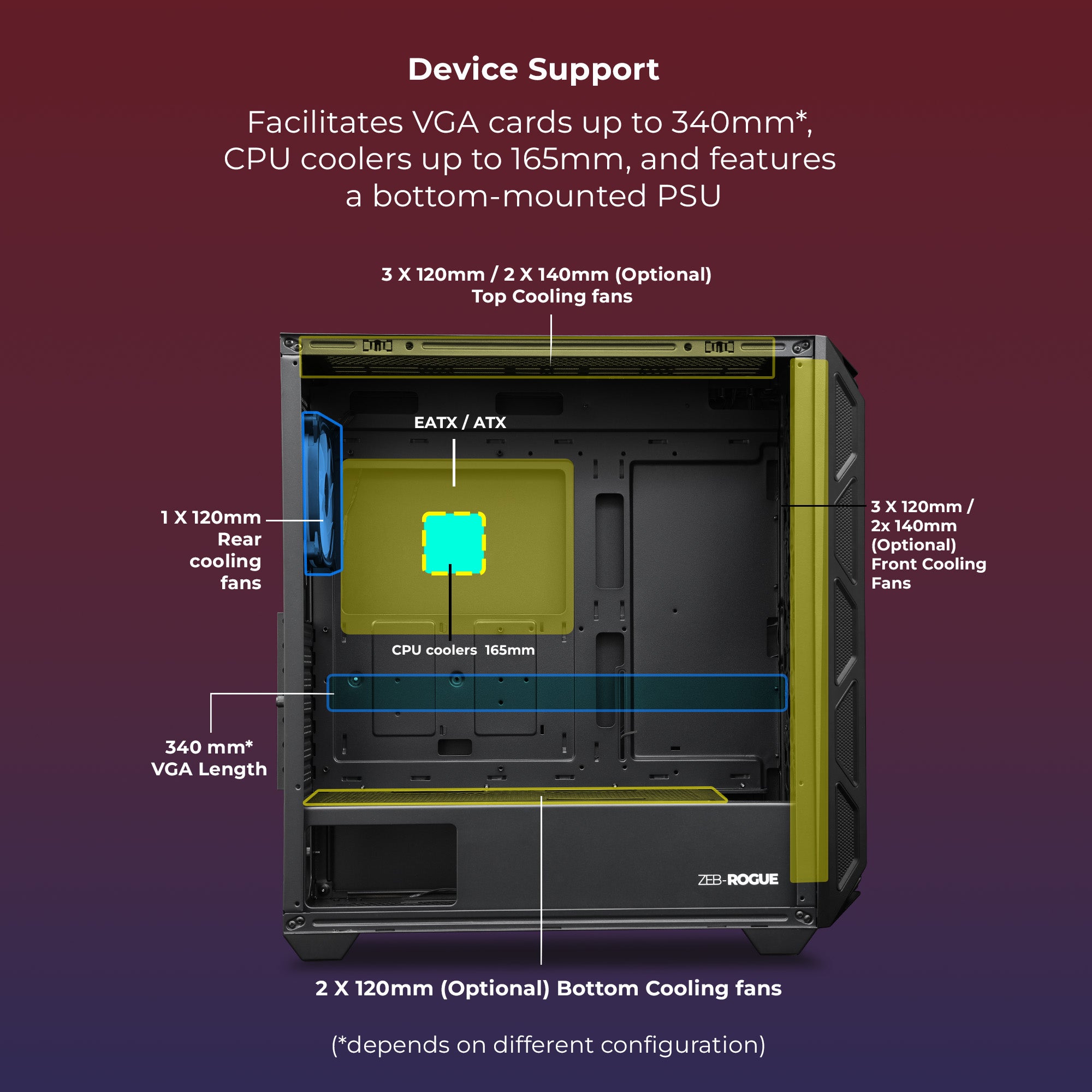 | Front | 120mm x 3 / 140mm x 2 (Optional) | |
