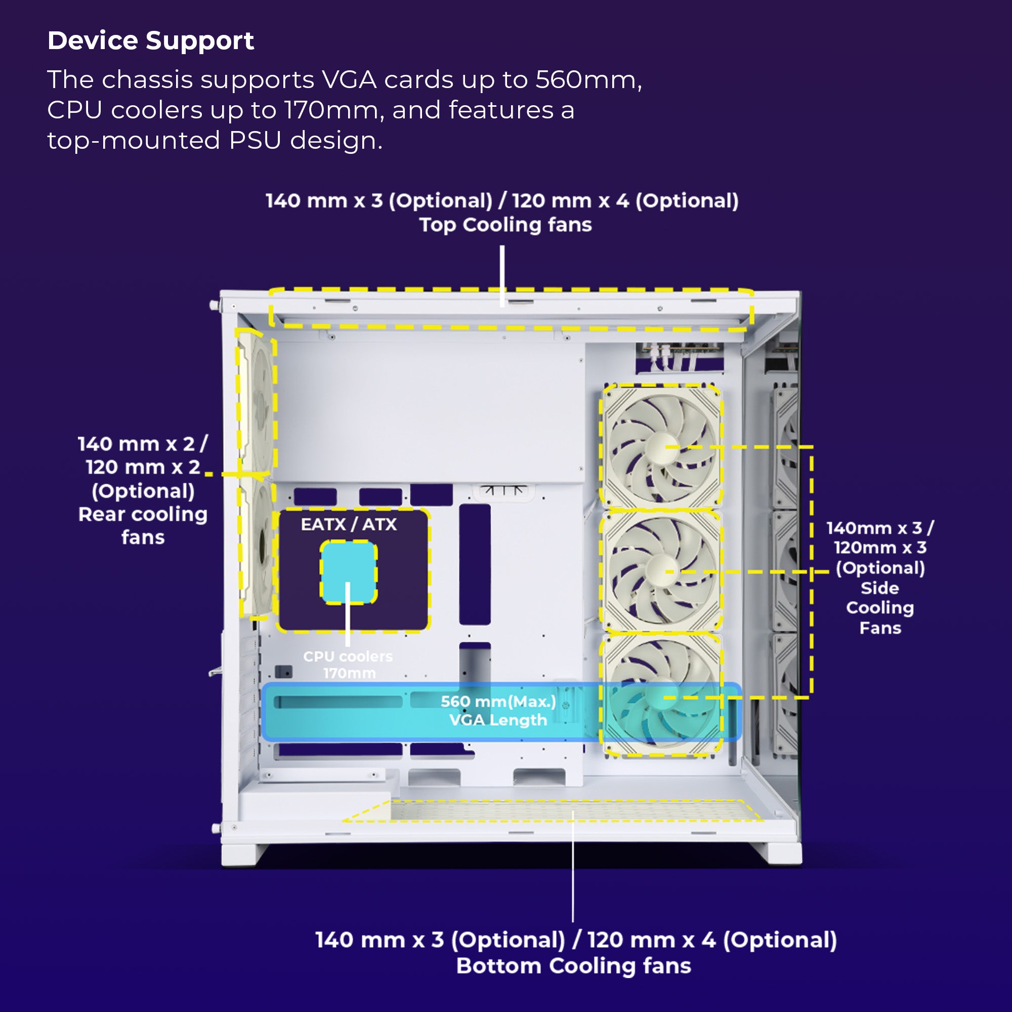 | Bottom | 140 mm x 3 (Optional) / 120 mm x 4 (Optional) | |