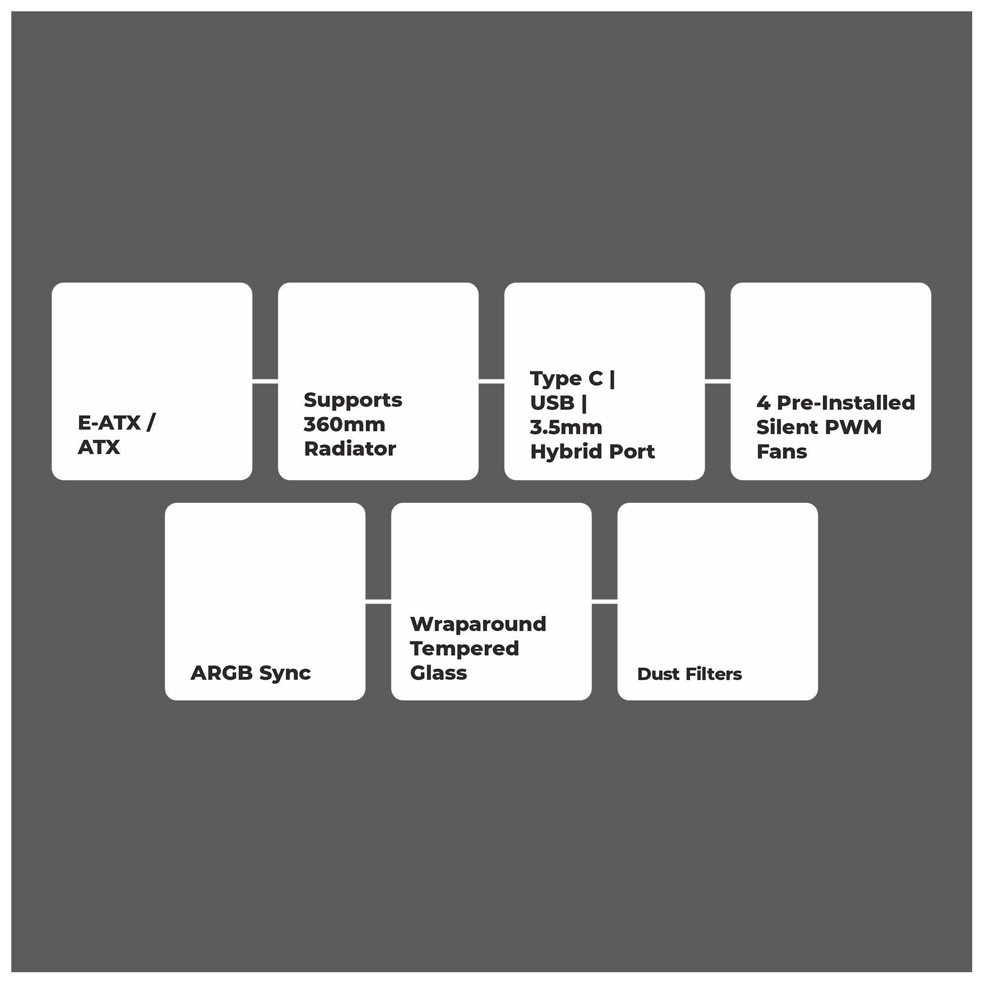 | Side panels | Tempered glass | |