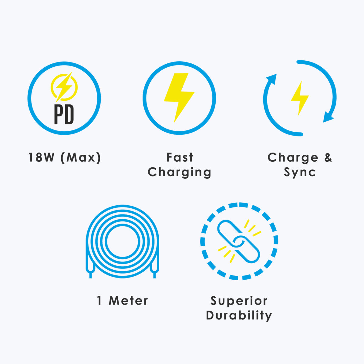 Type C to Type C cable | Fast charging | 1 meter length | Charge and Sync | PD18W Max output | Superior durability | Country of Origin : India