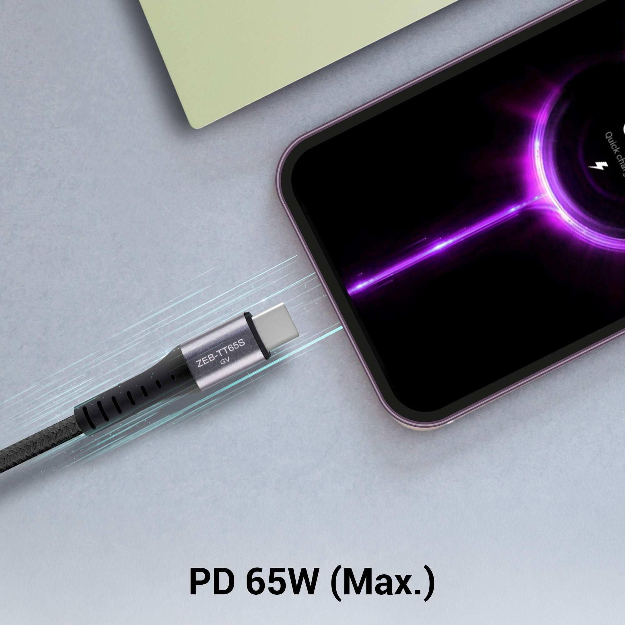 Type C to Type C cable | Rapid charging | Braided cable | 1 meter length | Charge and Sync | PD65W Max output | Superior durability | Supports Type-C PD Adapters | Country of Origin : India