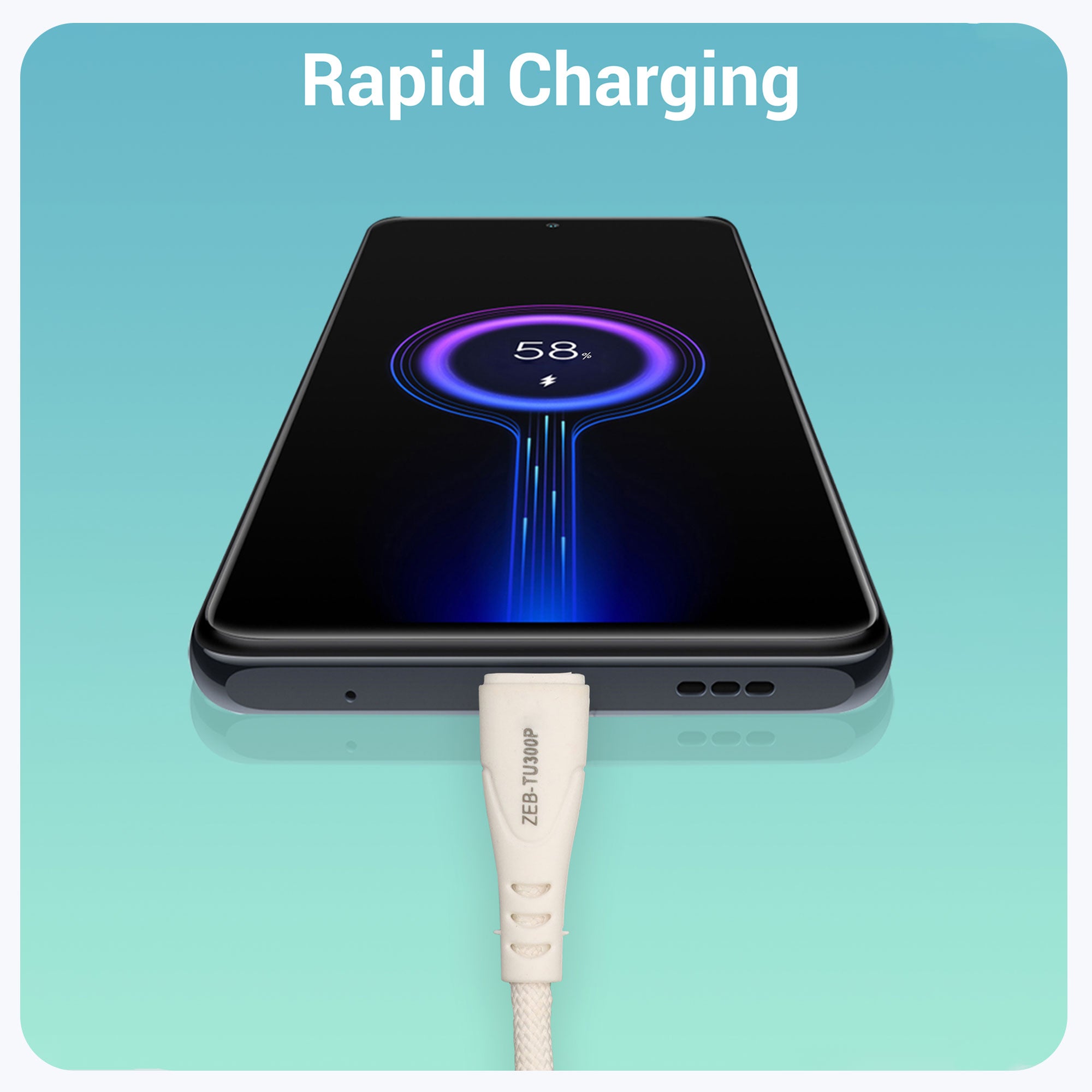USB to Type C Cable | 3A | 1 Meter | Charge & Sync | Superior durability | Rapid Charging | Country of Origin : India