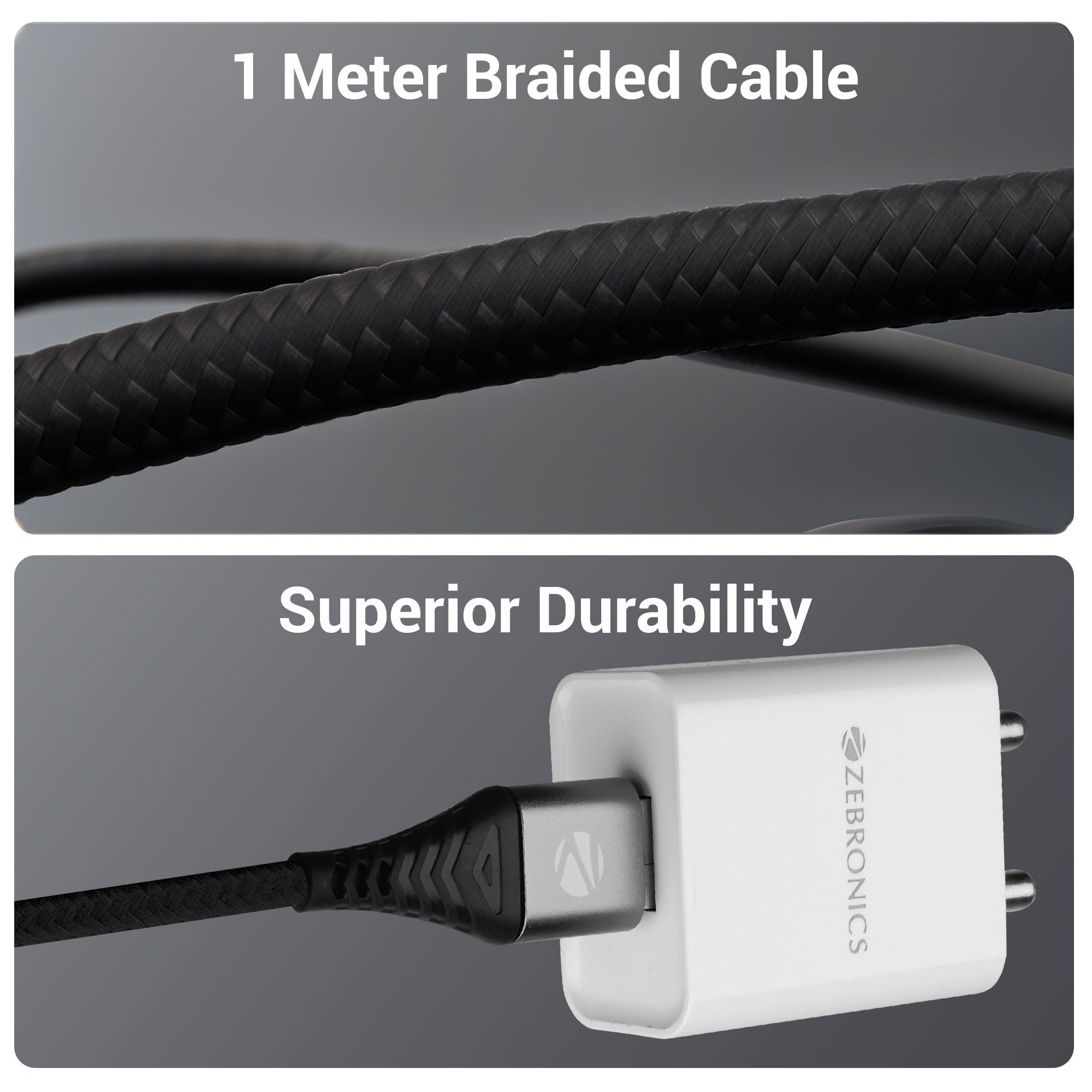 USB to type C cable | Supports upto 7.2A (max)* | Multiprotocols support | Superior durability | Rapid charge | 1 meter length | Braided Cable | Charge and Sync | Country of Origin : India