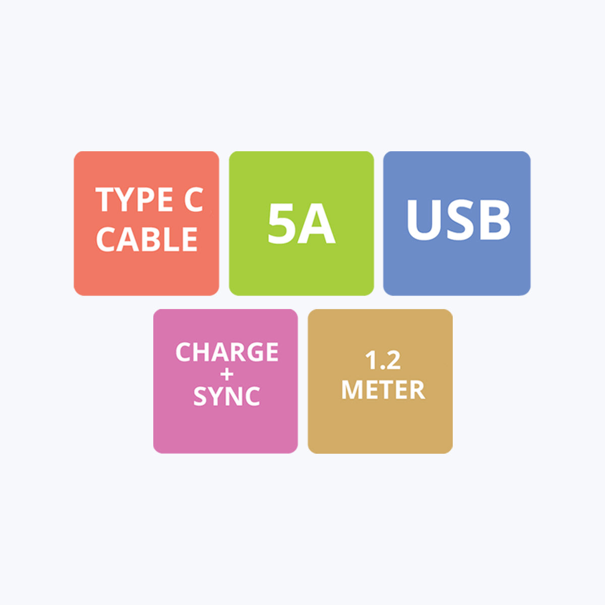 USB to Type C cable | Hi speed charging with 5A | Charge and sync | 1.2 meter length | Rigorous stress tests done for reliability | Country of Origin : China