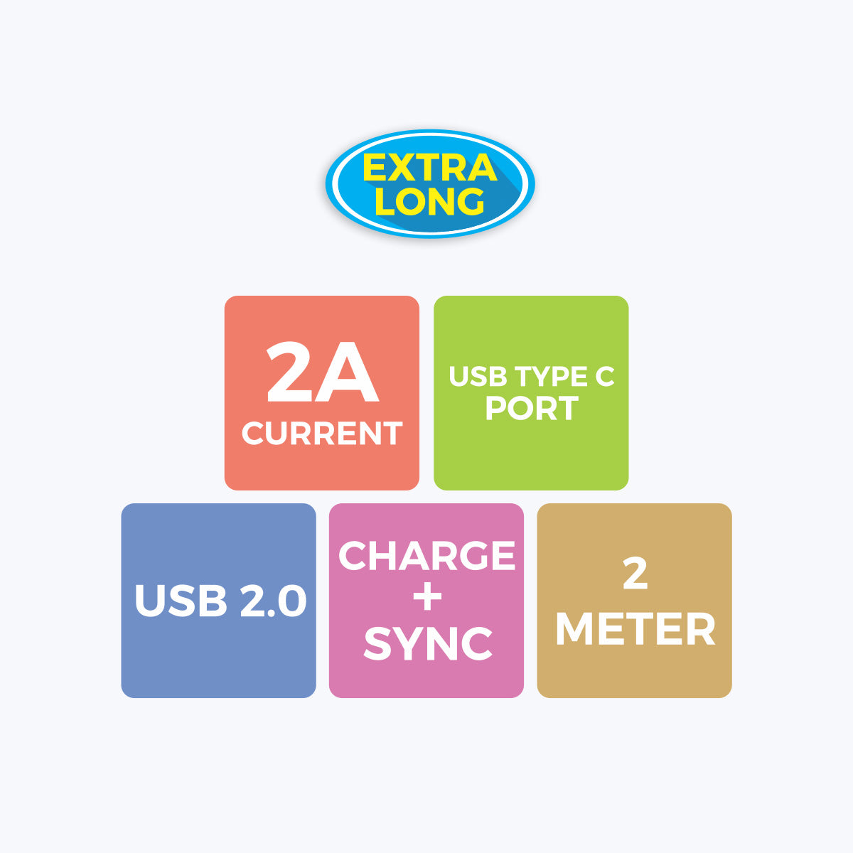 USB 2.0 | USB Type C cable | Hi speed charging with 2 Ampere current | Charge and Sync | 2 meter length | Rigorous stress tests done for reliability | Country of Origin : China