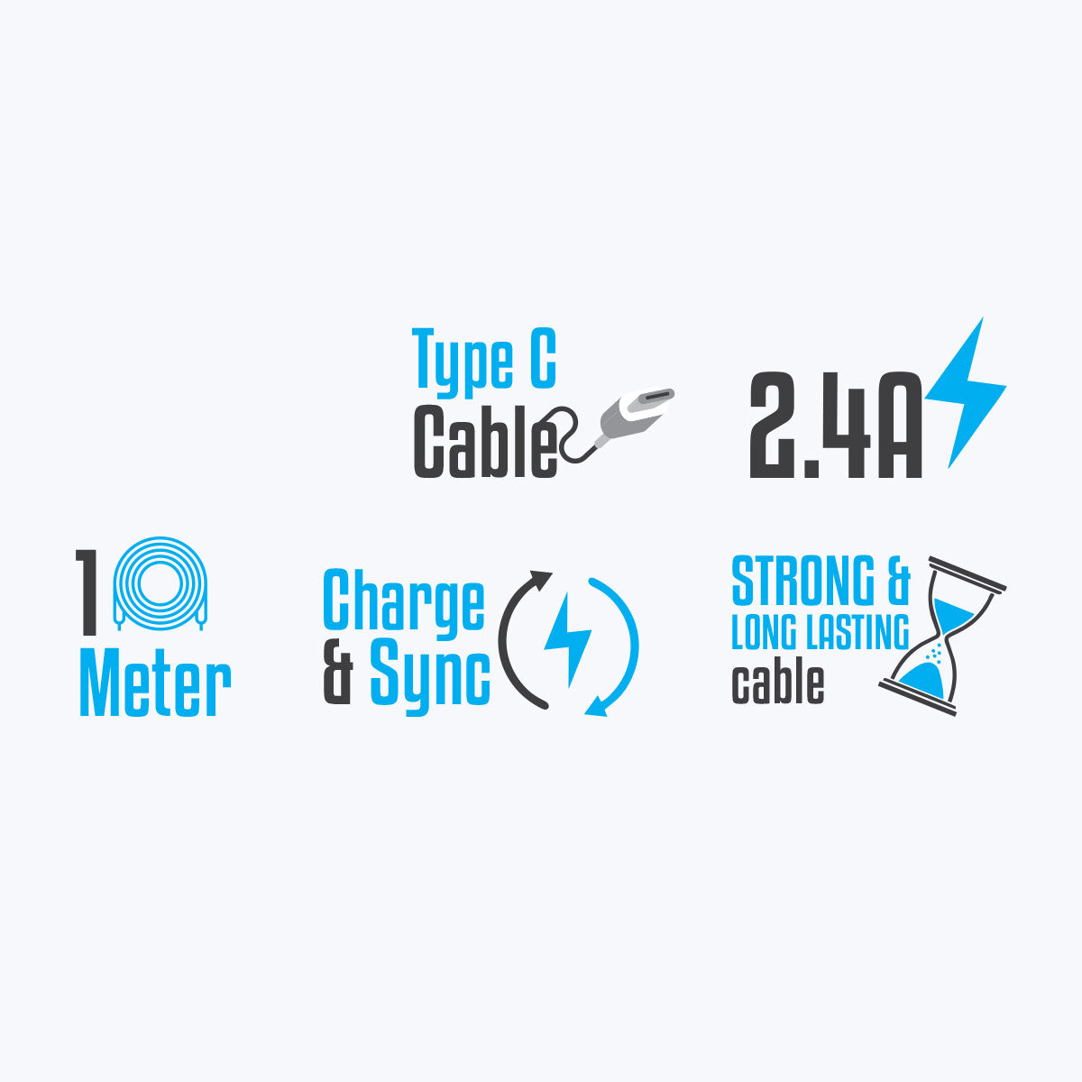 Type C Cable | 2.4A | 1 Meter | Charge & Sync | Strong & Long lasting cable