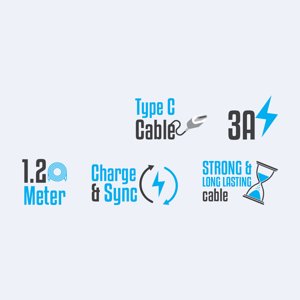 Type C Cable | 3A | 1.2 Meter | Charge & Sync | Strong & Long lasting cable | Country of Origin : China