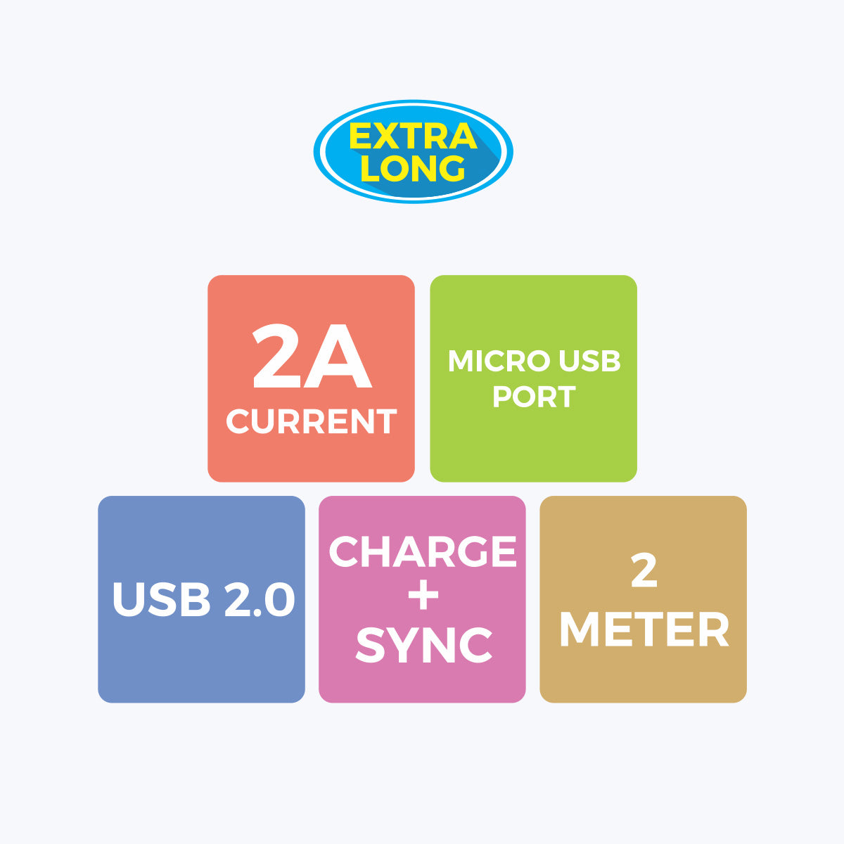 USB 2.0 | Micro USB cable | Hi speed charging with 2 Ampere current | Charge and sync | 2 meter length | Rigorous stress tests done for reliability | Country of Origin : China