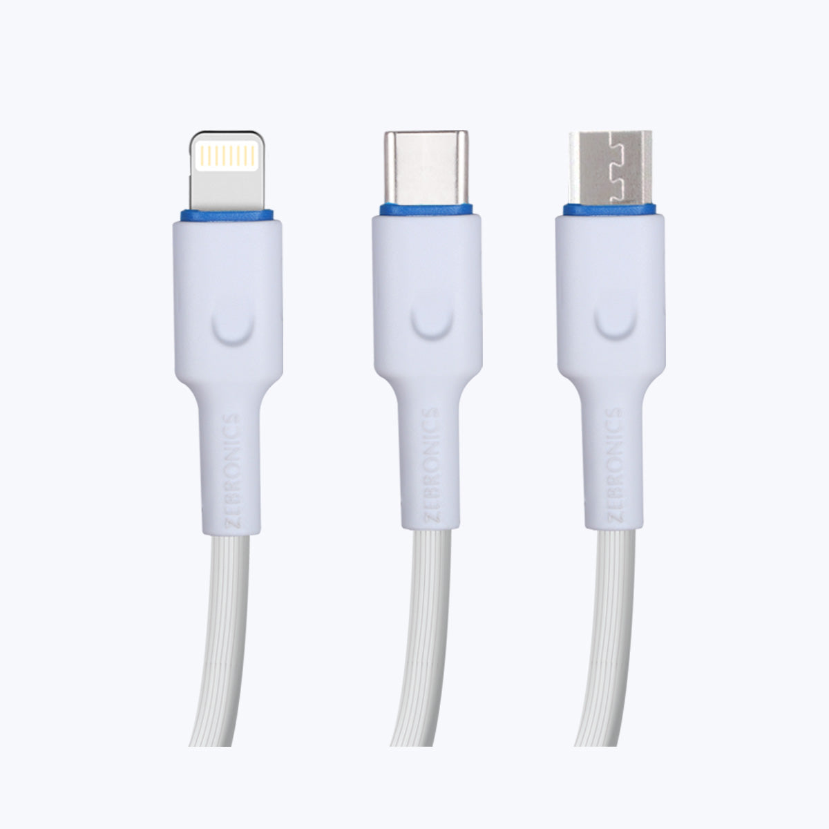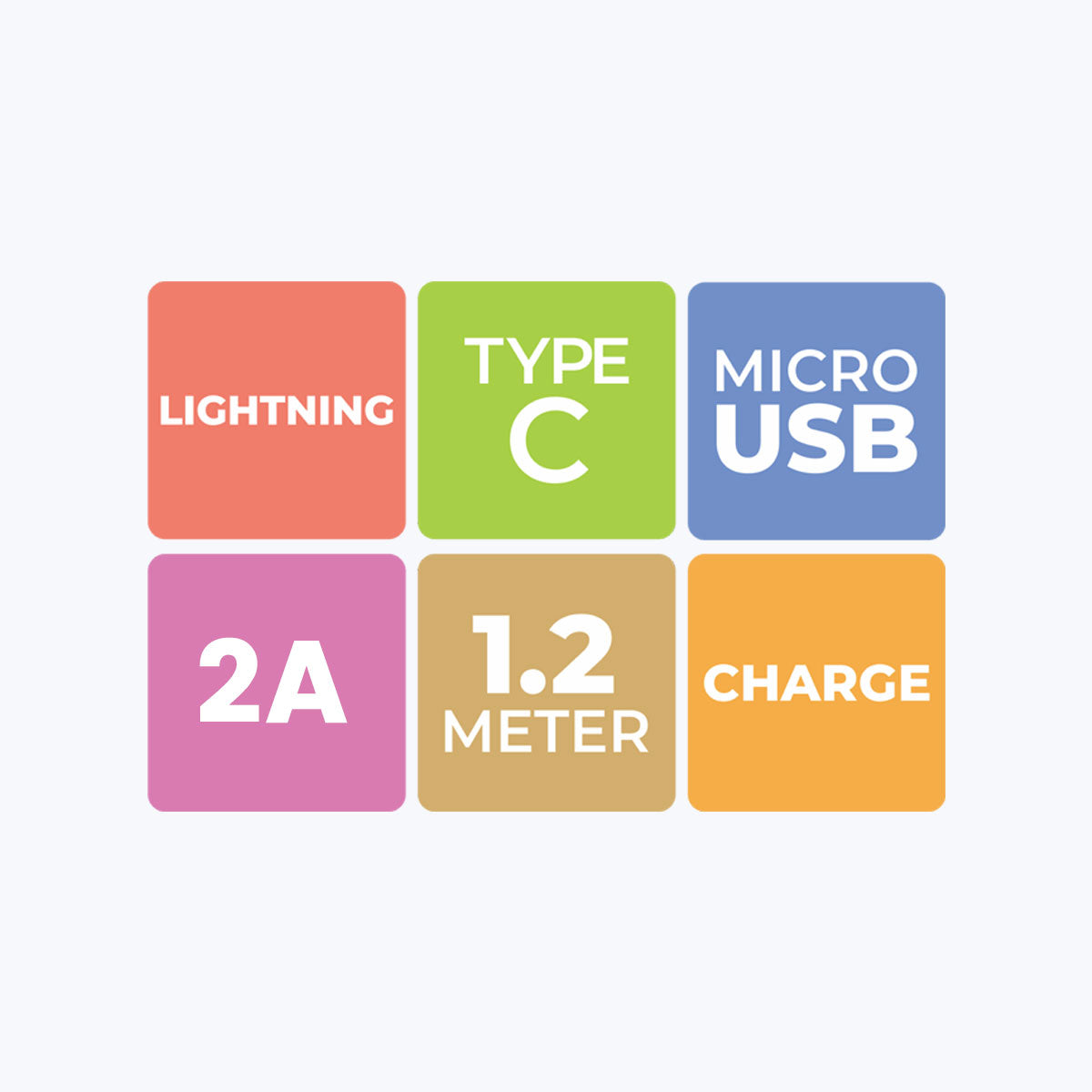 USB to Lightning, Type-C & Micro USB cable | Supports up to 2A | Charge | Strong & Long lasting cable | 1.2 Meter long cable | Country of Origin : China