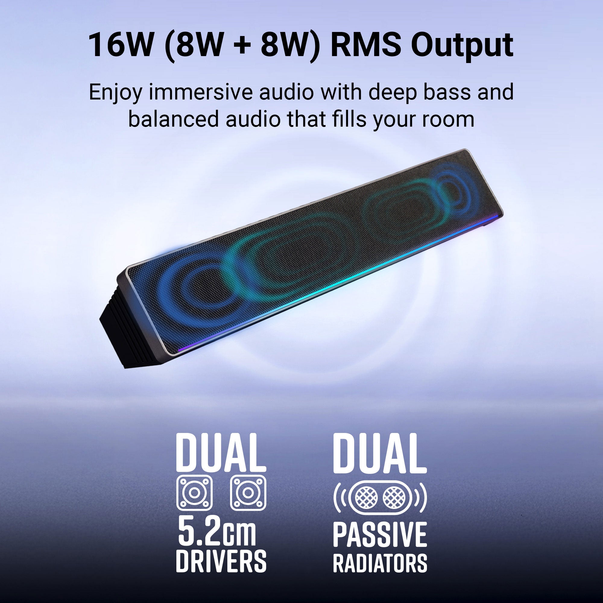 | Output power (RMS) | 16W (8W + 8W) |