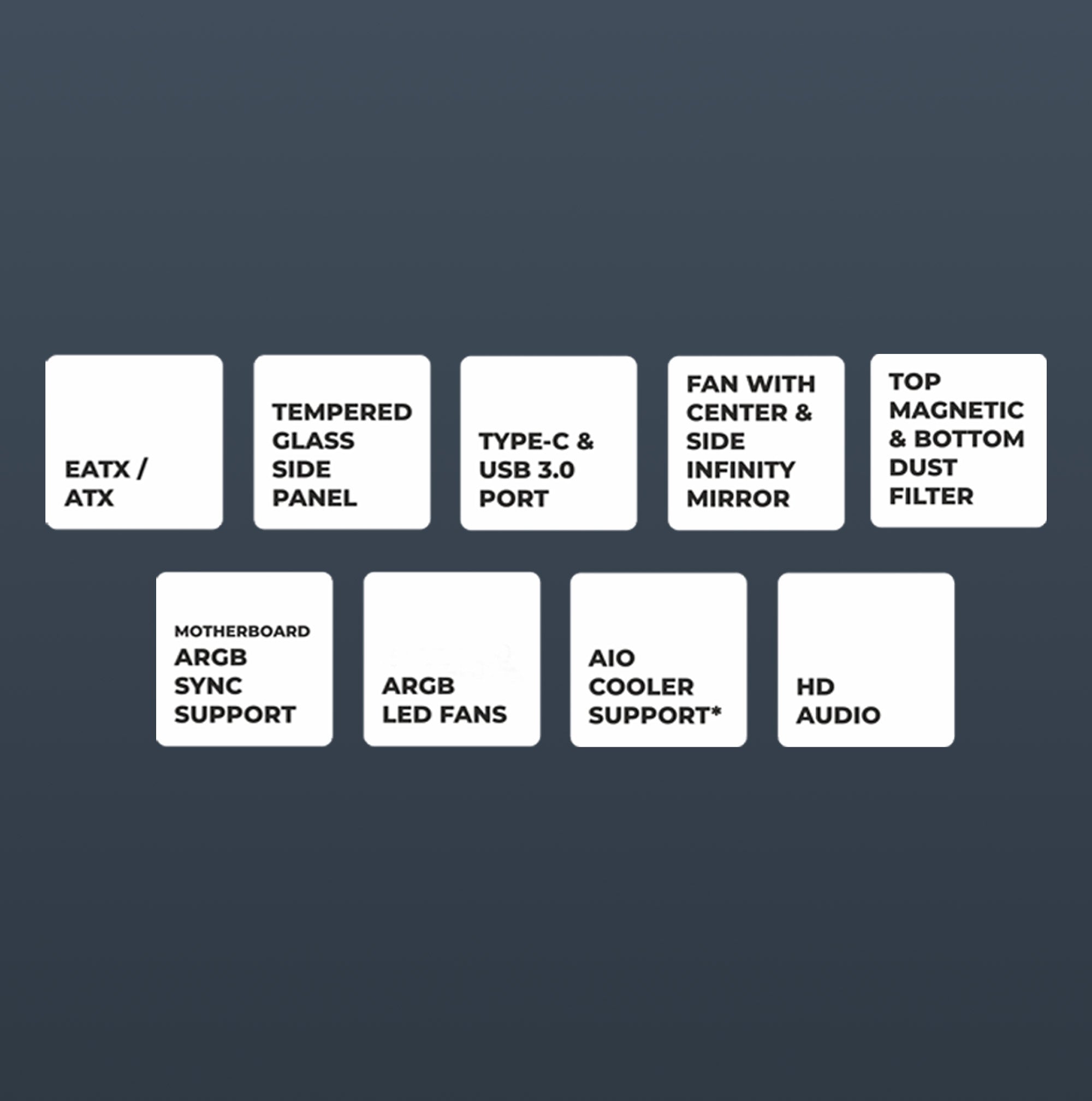 | Top | 120mm x 3 (Optional) / 140mm x 2 (Optional) | |