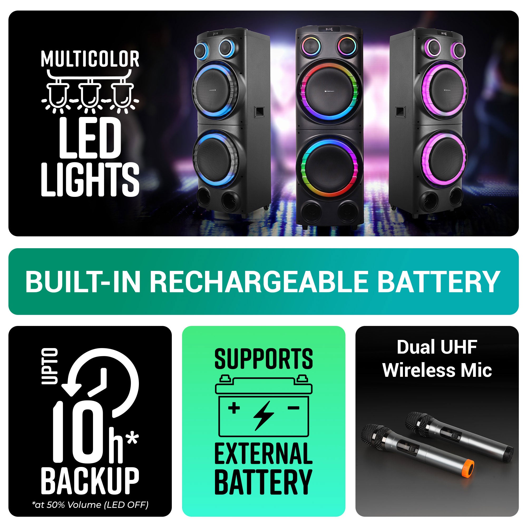 | *at 50% Volume (LED OFF) | ||