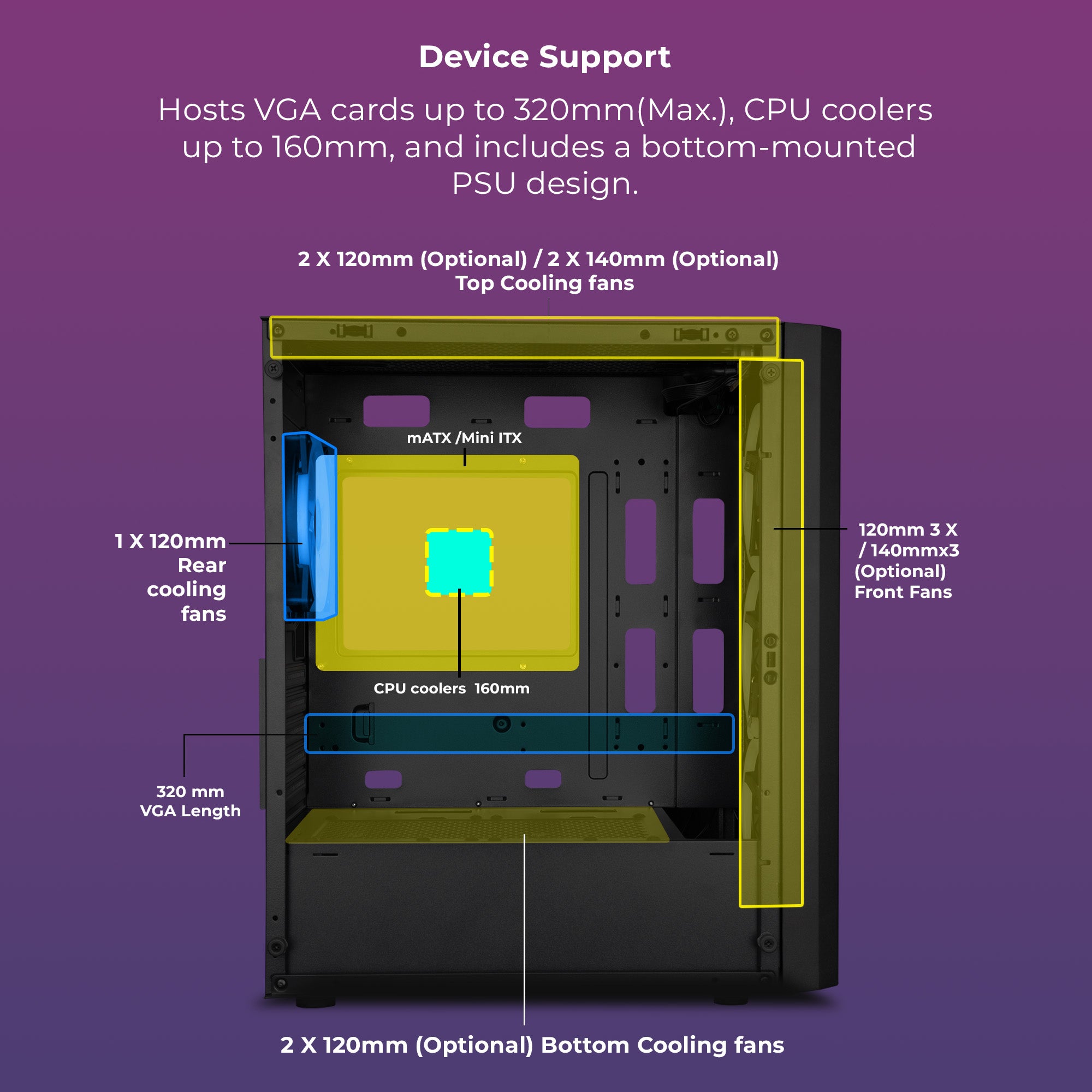 | Bottom | 120mm x 2 (Optional) / 140mm x 2 (Optional) | |